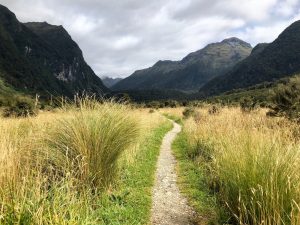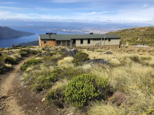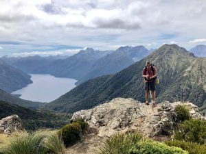 Pak pokračuju dolů. Je to hezká cesta. Asi v 5 dojdu k Luxmore Hut. Je tu mraky lidí. Je to rozhodně nejlíp položená chata na celém okruhu. Je tu výhled na jezero. Dávám si svačinu a pak pokračuju na závěrečnou část – sestup až do Brod Bay, kde kempuju. Chvíli se ještě kochám výhledy, až dojdu na hranici lesa. Teď už to bude trochu nuda.