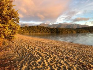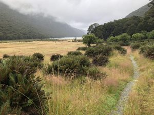 Vyrážím v 8. Čeká mě 5,5 km k začátku stezky a pak 4 km zpět podél jezera k Visitors Centru a Te Anau. Cesta od kempu je docela nuda – krásná široká cesta lesem.