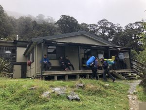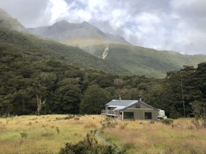 Loučíme se a já vyrážím od parkoviště do kopce stezkou lesem. K Howden Hut je to 3,5 km. Trochu prší, ale ne moc. Jde to dobře. U chaty jsem za 40 minut.