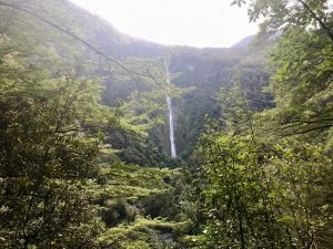 Vyrážím v 7:25. Dneska to bude snadné. Jdu pouze na začátek stezky k parkovišti asi 10 km. Je to velice rovná a rychlá cesta. Za hodinu dojdu Ester a asi v 9 jsem u auta. Mám náskok, tak se jdu ještě podívat na blízký vodopád. Teda blízký výhled na vodopád. Ukazuje se totiž, že vodopád je sice hezký, ale hodně v dálce a nejde se k němu dostat. Takže to je trochu slabota.