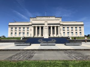 Měl jsem před sebou poslední misi – koupit a odeslat pohledy a koupit nějaké dárky. Pořád jsem nemohl nikde najít pohledy, co by se mi líbily. Věděl jsem, že muzea mívají fajn obchůdky, takže jsem se vypravil k Auckland War Memorial Museum. Je to v takovém obřím parku na kopci nad městem.
