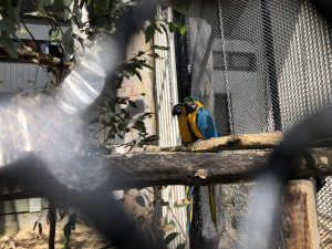 Měli tam taky voliéru se všelijakými papoušky.