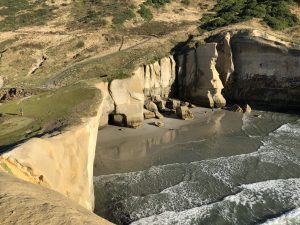 Ráno jsme se s jednou holkou, co taky tak nějak jde Te Araroa, ale momentálně má pauzu, vydali na jednu velkou místní atrakci – Tunnel Beach. Cesta trvala asi půl hodiny autobusem a pak ještě tak 20 minut pěšky.