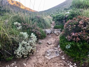 Následující 2 km se ještě nic nedělo, ale pak už začalo dnešní hlavní stoupání – z výšky 100 m do výšky 880 m. Cesta vedla po starém kamenném chodníku sevřeném mezi skalami.