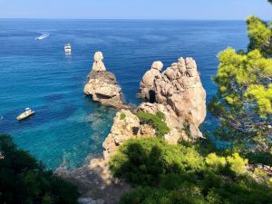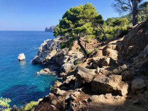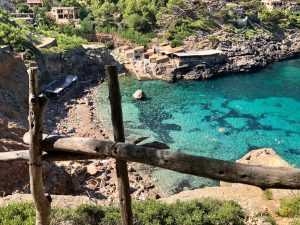 Docházíme do městečka Deià ve výšce 170 m. Je 11:20 a máme za sebou 12 km. Nakupujeme jídlo v sympatickém krámku a doplňujeme vodu ve studánce. Pokračujeme dál až dolů k moři, kde se parádně vykoupeme.