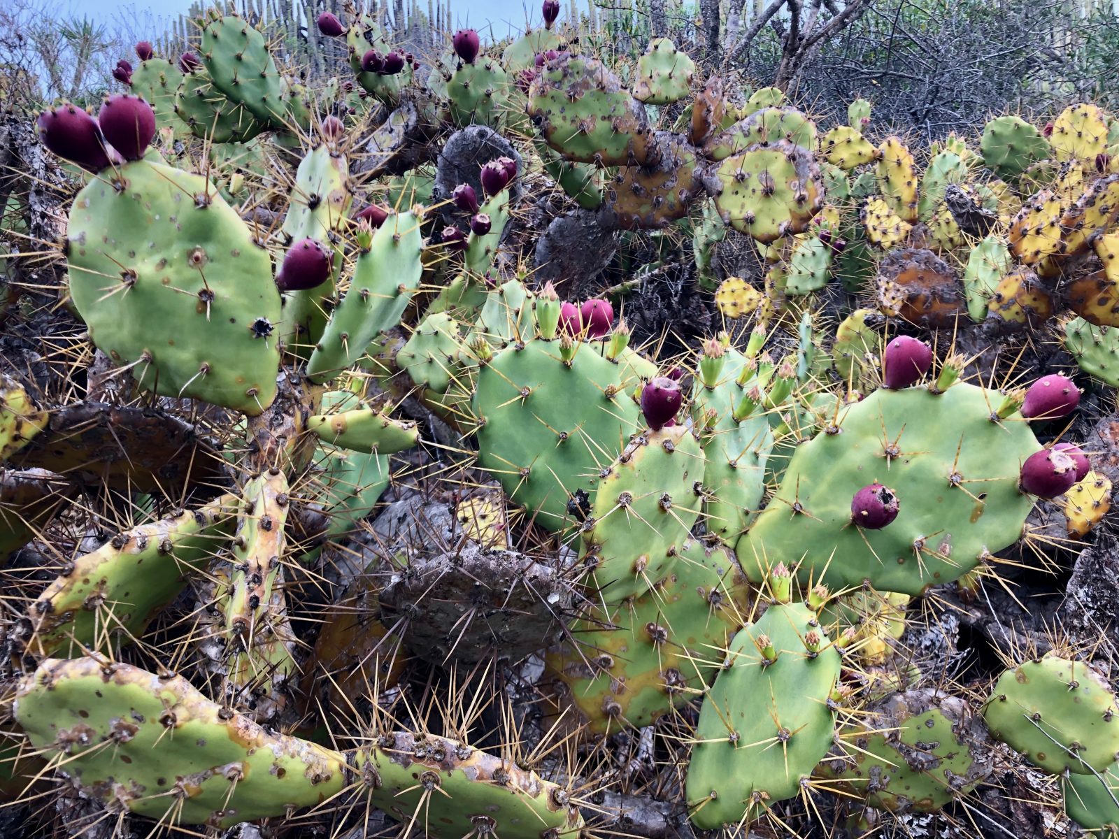 Teplota je příjemná, slunko pomalu vychází, paráda. Prve 10 minut po chodníku a asfaltu a pak už začíná sopečná krajina. Je pod mrakem, takže některé vrcholky jsou zakryté, ale aspoň vidím dolů až na pobřeží. Všude roste spousta kaktusů. Líbí se mi to tu.