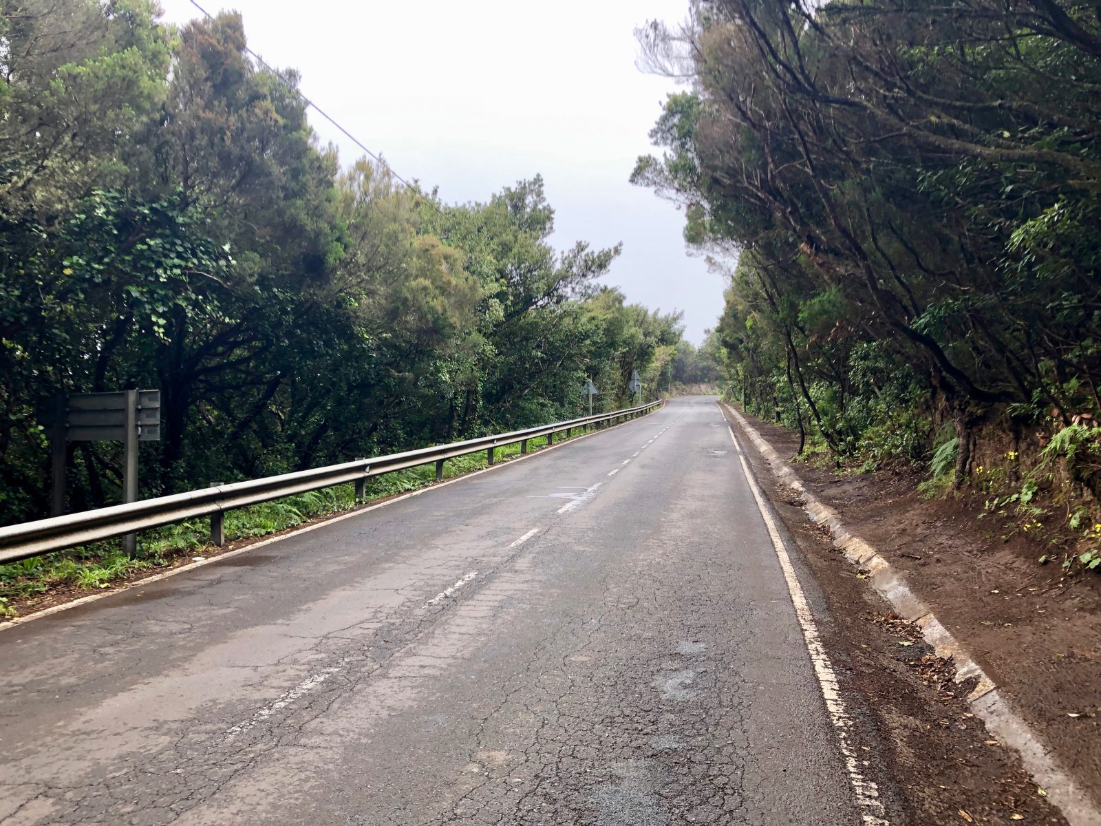 Náš bus má konečnou v Madre del Agua, odkud je to pár km po stezce k jedné oblíbené turistické atrakci – Cruz del Carmen. Měl by tu být hezký výhled až k moři. Holky mě jmenují svým průvodcem, haha. Je to vtipné místo. K parkovišti s vyhlídkou je to 600 m. Na ceduli píšou, že to bude trvat 1,5 hod. A že máme tu přírodu kolem vnímat všemi smysly. Usilovně se o to snažíme. Les je hezký. Je to tu opravdu o dost jiné než ta jižní část ostrova, kde jsem strávil předchozí dny. Ve vzduchu je cítit vlhkost. Všechno je zelené.