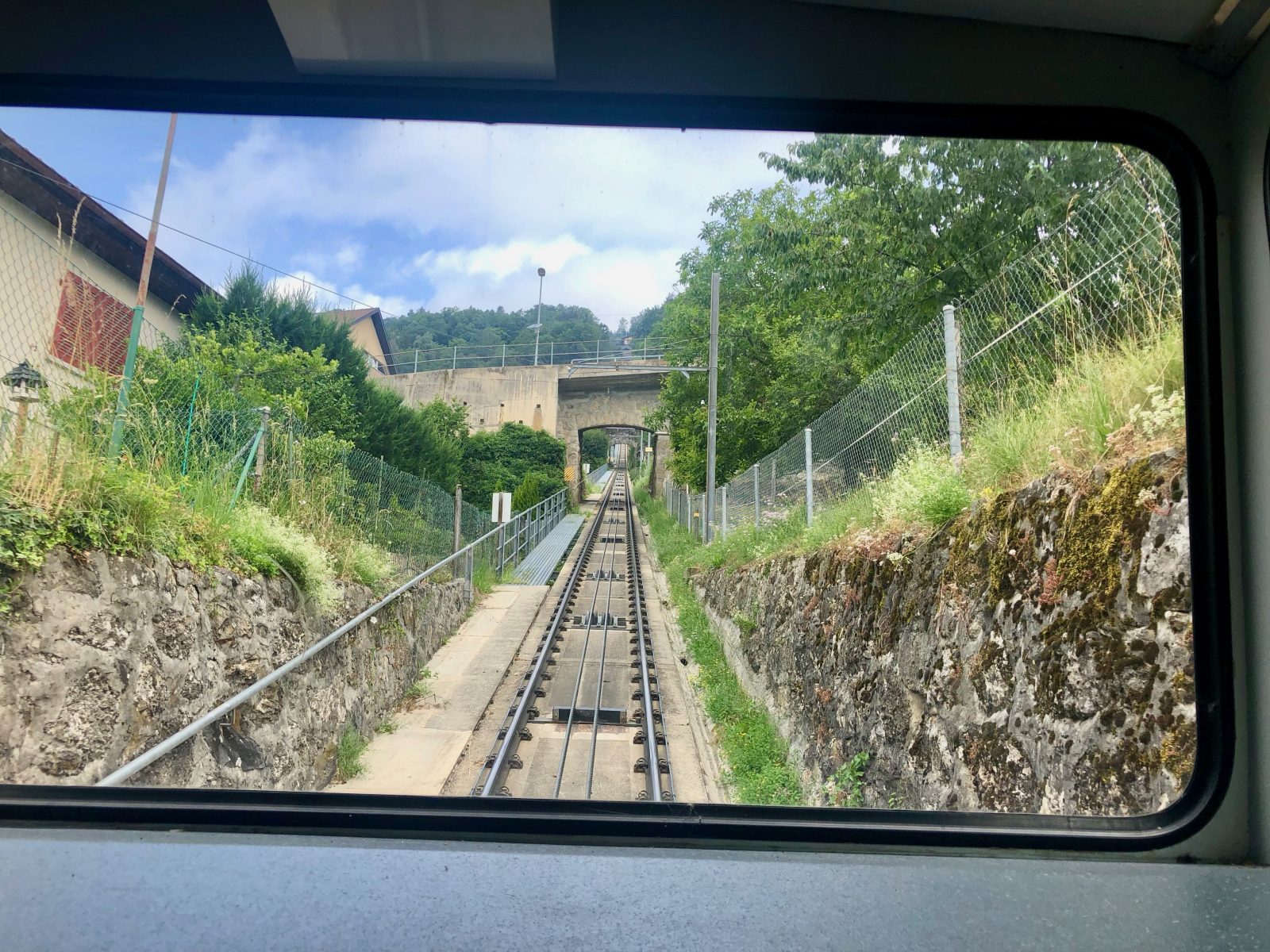 Pak kupuju něco na jídlo a jedu se projet zubačkou vysoko nad město. V rámci ubytování v Montreux jsem dostal kartičku na dopravu zdarma v celém regionu. Nahoře ale nic moc není, tak si sním jídlo v parku a pak jedu zase dolů.
