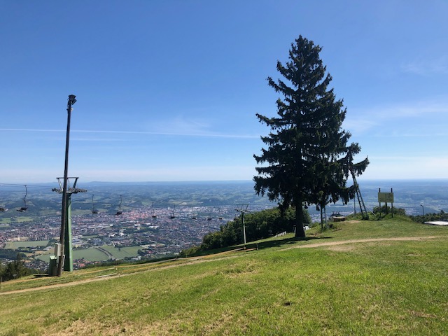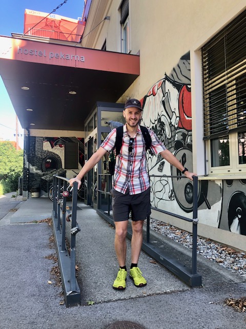 Pak se dobalím a je čas na foto a vyrazit. Borec prý že mě hodí na start trailu autem! Já se mám! (Je to tak 2,5 km – buď pěšky, nebo autobusem.) Po cestě jsem se dozvěděl, že ta oblast, kde je ten hostel, bývala za Rakouska-Uherska pekárna pro celou armádu. V 90. letech tam squatovali umělci a teď už jsou tam spíš anarchisti apod. Město by to chtělo revitalizovat, ale trochu se to táhne (dům mládeže včetně hostelu byl první střípek).