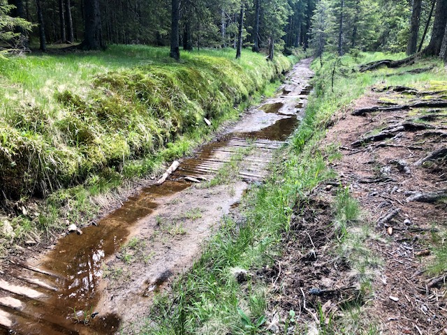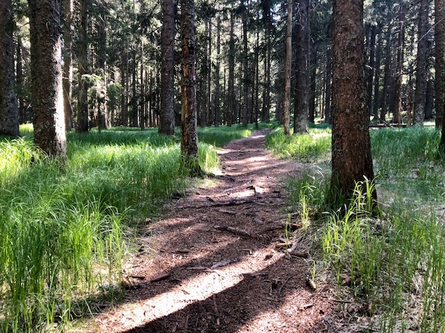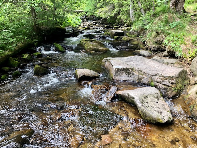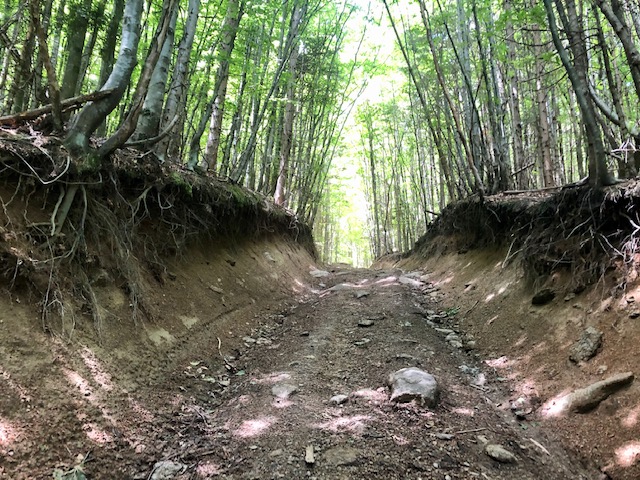 Teď už cesta tolik nestoupá. Různě se houpu v lese. Je to tu hezký. Střídají se různé cestičky s většíma lesníma cestama. Samozřejmě se těším na větší hory, ale rozhodně si nemůžu stěžovat, je to tu hezké. Půda je měkká a všude je dost vláhy, všechno se zelená.