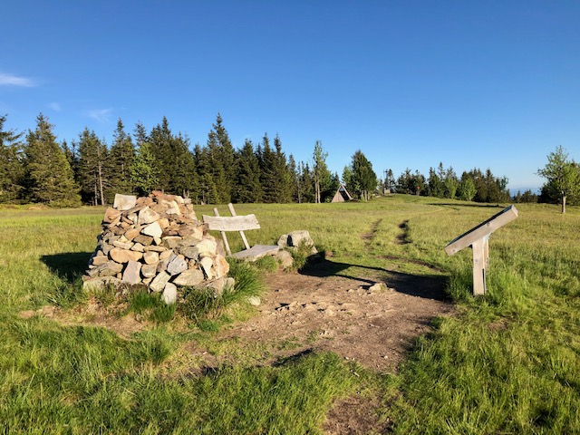 Cesta je pořád fajn. Až v 15:30 dojdu na Chatu na Pesku. Mám za sebou 32 km. Tady konečně vypiju litr vody a další 1,2 l doplňuju na cestu.