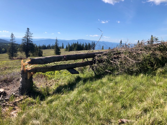A v 6 dojdu k další chatě – Ribniška koča. Měla být podle webu zavřená, ale mají otevřeno. Dávám si guláš a pivo a dozvídám se, že o půl hodinu dál je na kopci bivak! Že bych tam dnes skončil?