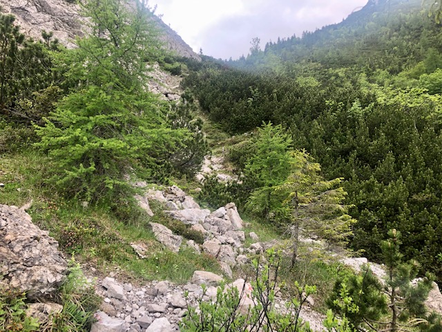 Teď jen sejít do údolí. Akorát vybrat tu správnou stezku – je jich několik. Ale asi jsem vybral dobře, protože to šlo rychle.