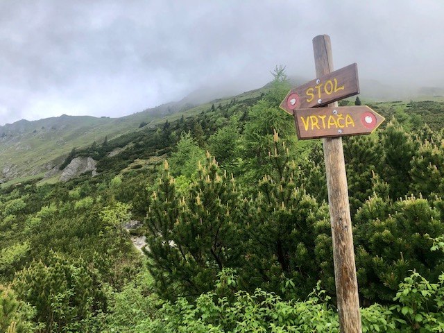 Vyrážím v 7:45. Je pěkně mokro. Prve mě čeká postupné stoupání až na hřeben a na vrchol Stol (2236 m). Samozřejmě to do kopce je vždy dřina, ale celkem se to dá. A není to moc prudké. Jdu pořád v kraťasech a krátkém rukávu, ale je to čím dál víc na hraně – dost fouká a je zima a jsem v mraku. Chvíli před vrcholem oblíkám bundu.