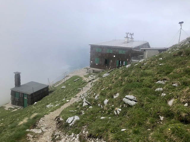 Chata je sice ještě oficiálně zavřená, ale někdo má s sebou klíče, takže je otevřeno a uvnitř si dám svačinu. Postupně dochází další lidi. Je tu fakt kosa, oblíkám dlouhé kalhoty a vyrážím.