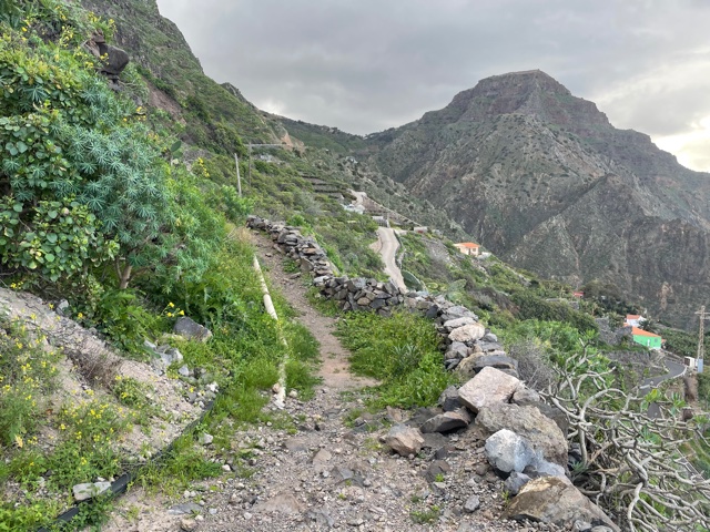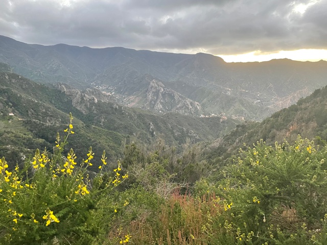 Když jsem u přístřešku, tak je jasné, že to není dobré. Je to přímo na křižovatce u přehrady. No nic, tak asi abych došel až do Vallehermosa. Je tam hostel. Domlouvám si ubytko a říkám, že za hodinu se uvidíme. Musím sebou hodit. Je to 6 km, 160 m nahoru a asi 600 m dolů. Je 18:45 a v 19:10 je západ slunce. Bude to se světlem hodně naknop.