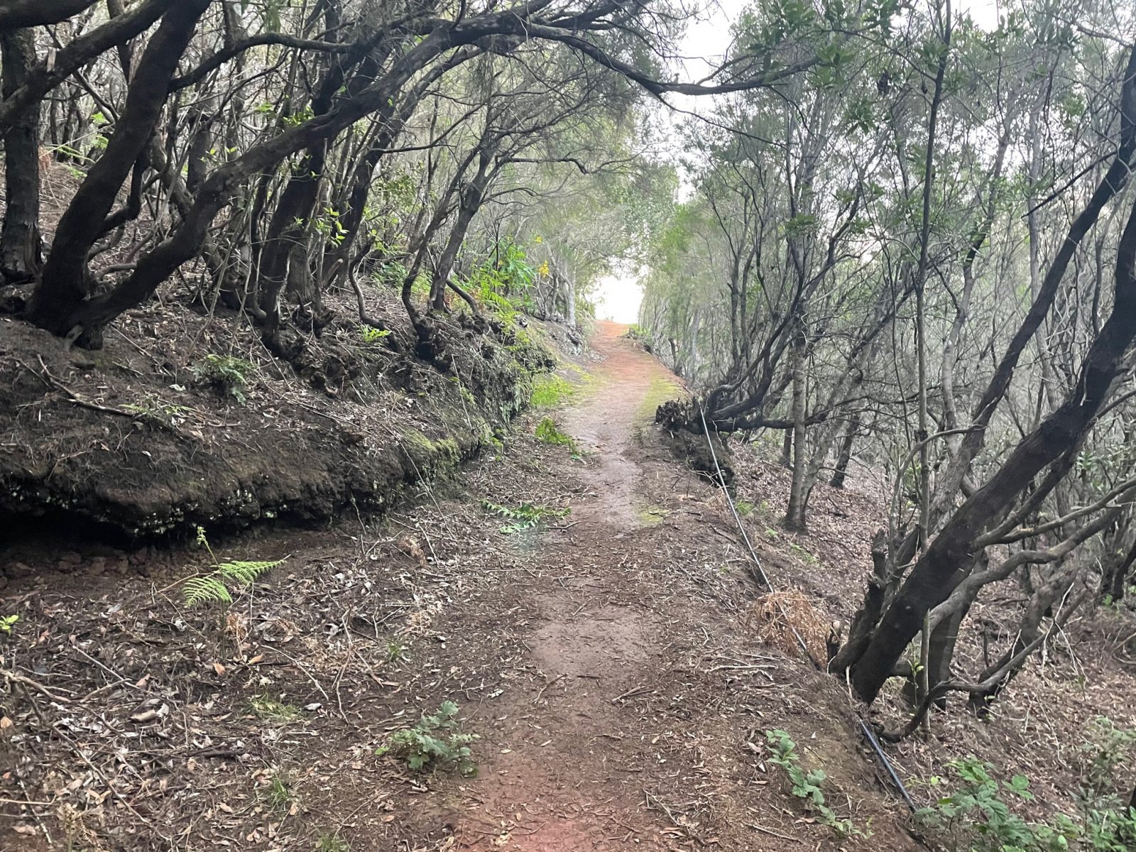 Někdy po 12. konečně začíná hezká stezka a ve 12:50 jsem v sedle v asi 900 m. Čas na svačinu! Je tu krásný výhled zpět na San Sebastian.