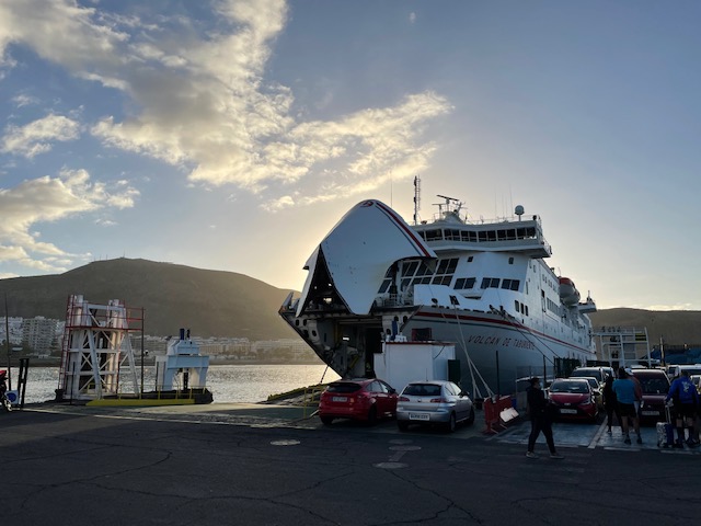 Vstáváme s Vaškem v 6:45. Snídáme. V 7:30 vyrážíme do přístavu v Los Cristianos. Cesta trvá asi 20 minut. Loučíme se a já pokračuju ještě kousek pěšky až do kanceláře, kde si koupím lístek. Je to trochu předražený. Cesta trvá hodinu a chtějí za to 35 eur. Prý je to tím, že moc nemají konkurence – dřív ji měli a bylo to levnější.