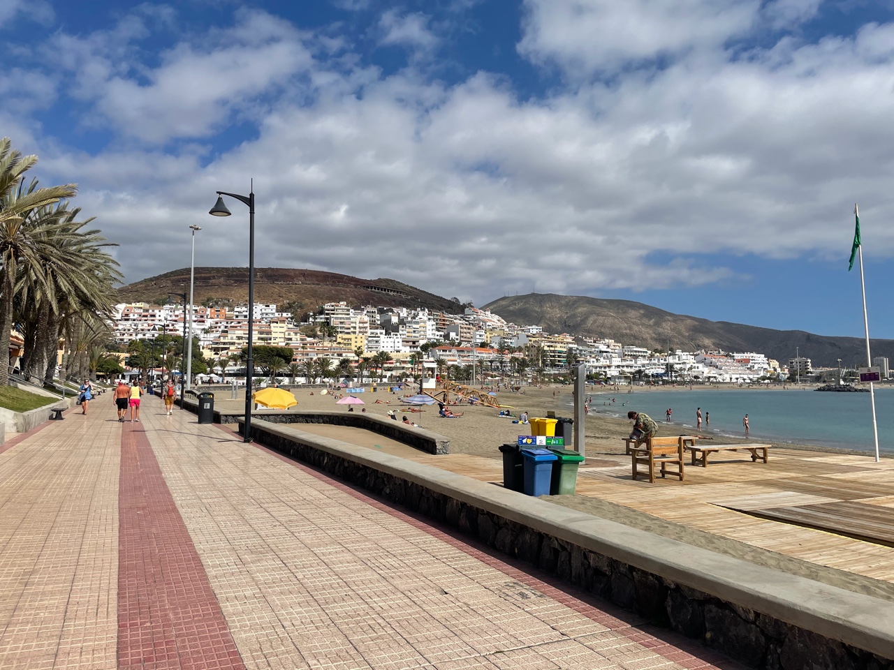 Ve 3 jsem v Los Cristianos a jdu asi 15 minut podél pobřeží na pláž, kde by měli být Stupkovi. Potkávám je zrovna u restaurace, kam si jdou sednout na oběd, tak se přidávám. Sice jsem už obědval, ale druhý chod mi asi neuškodí. Mají tu 3chodové menu za 10 eur.