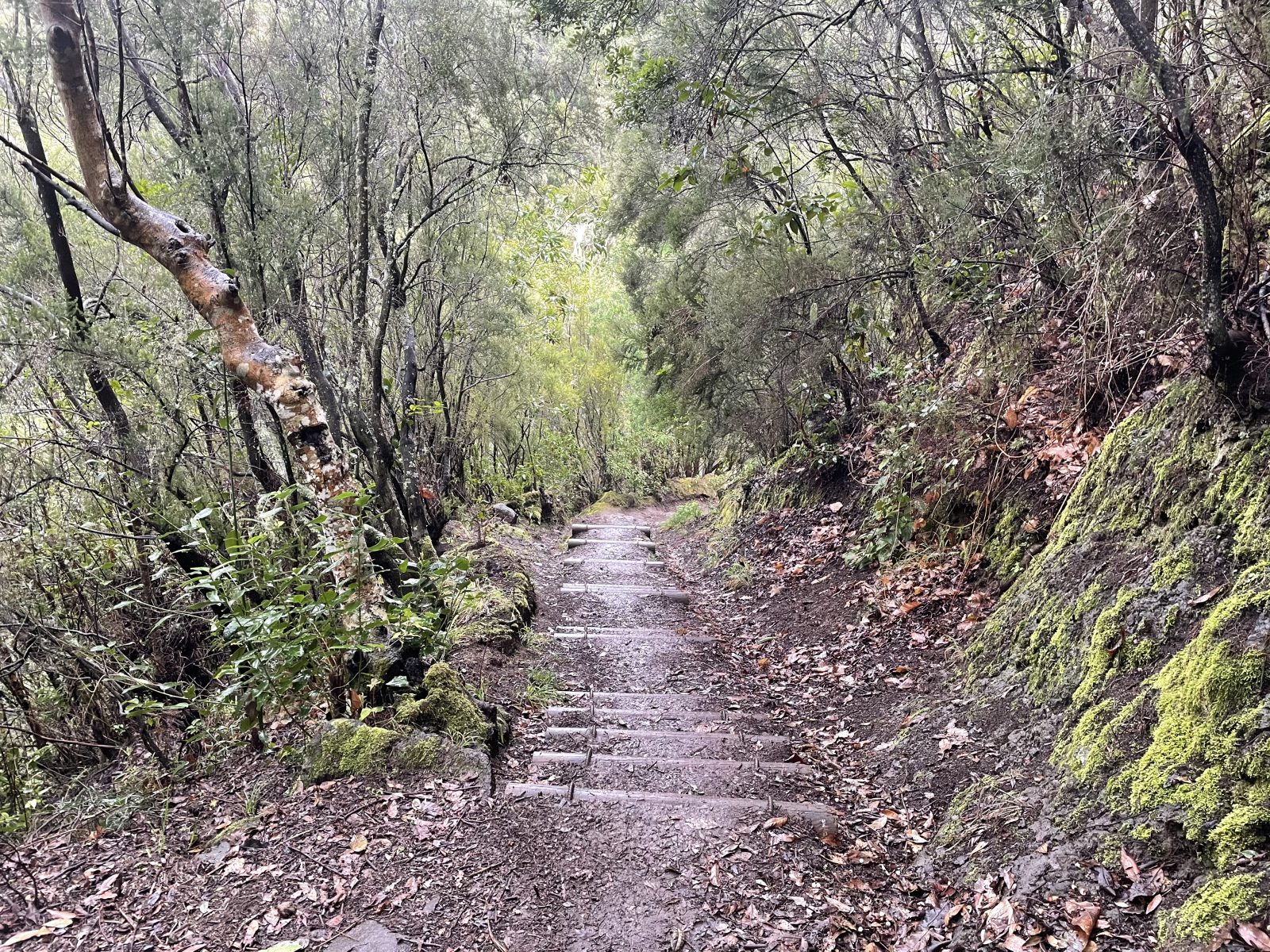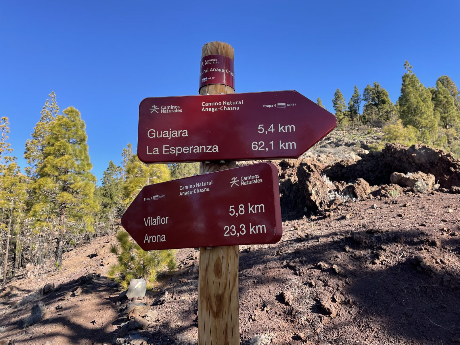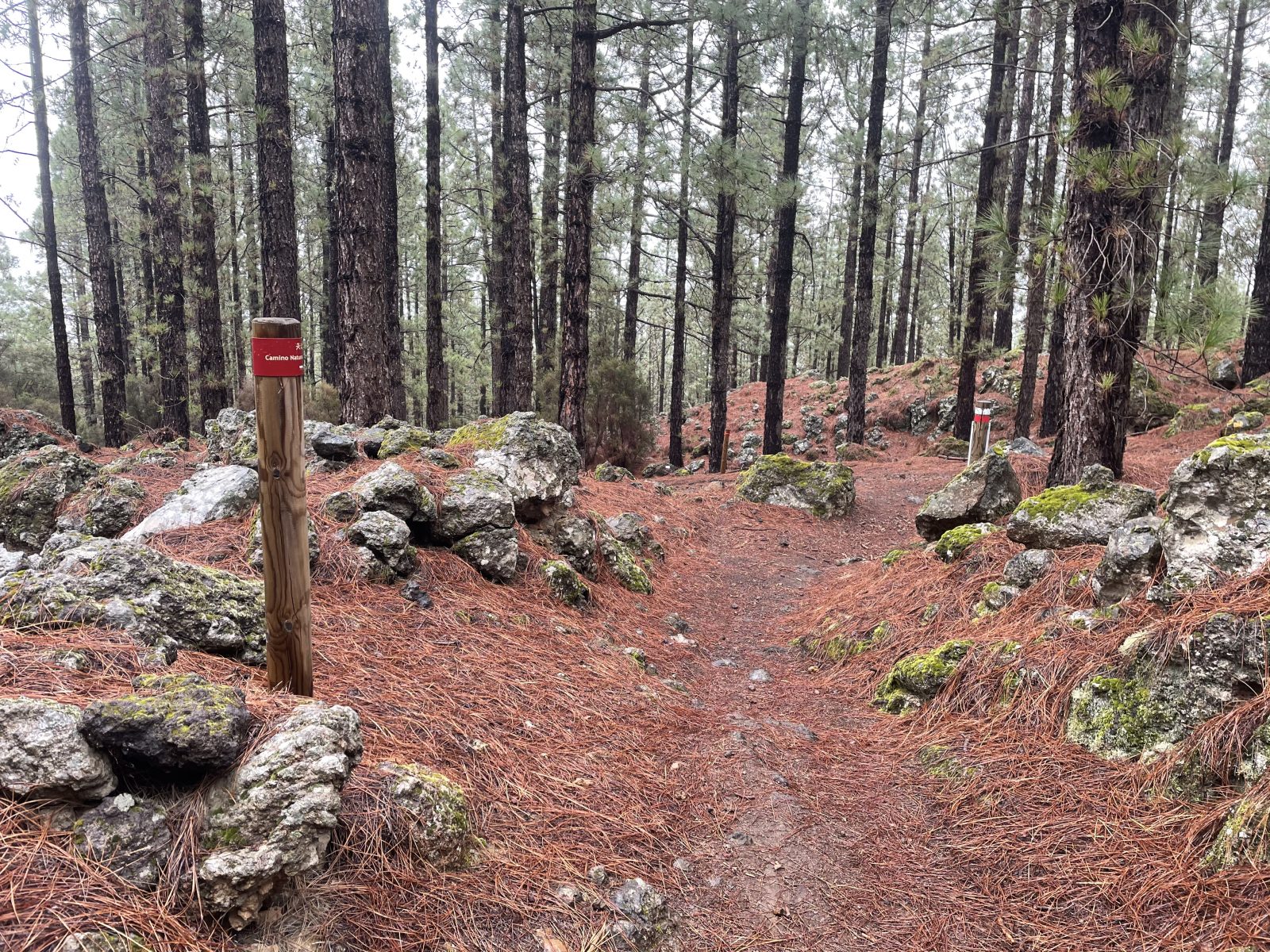 Asi v 15:15 jsem ve výšce 1000 m. Přemýšlím, co dál. Měl jsem v plánu asi za 5 km zakotvit pod turistickou stříškou a pak pokračovat pořád dál po stezce GR131 až na konec do La Esperanzy. Jenže to počasí je takový všelijaký. A z materiálů, co jsem si našel, to vypadá, že většina té zbylé cesty bude v lese, občas trochu nahoru a dolů, jen párkrát nějaký výhled. Jako asi by to bylo pořád hezký, ale nějak necítím potřebu v tom pokračovat.