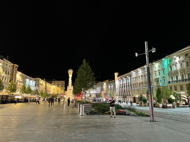 Najednou je chvilku před desátou večer a my zjišťujeme, že jsme skoro v Linci a že tu budeme 3 hodiny stát, až do 1:06!! Od začátku to bylo v jízdním řádu, ale nikdo jsme si toho nevšimli. Tak teď už chápu, proč je spoj z Prahy o tolik pomalejší než ten z Vídně – my tu na ně čekáme.