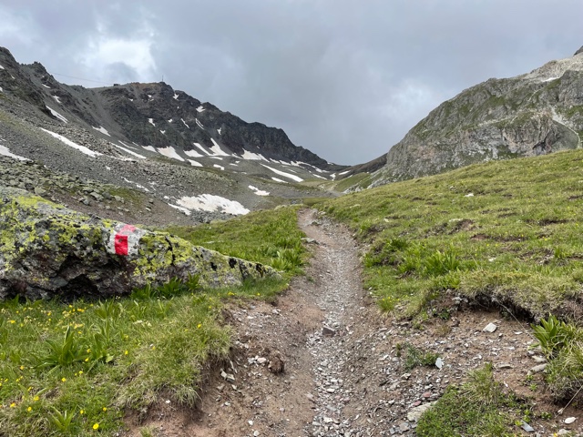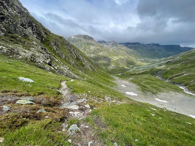 V 15:50 jsem v sedle Fuorcla d’Agnel (2982 m). Počasí je pořád ještě Ok, sestupuju do zeleného údolí.