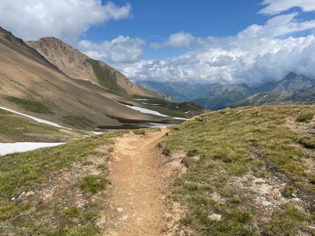 Tady začne hlavní část stoupání do sedla. Krajina se postupně mění. Poslední úsek už je zase mírnější.