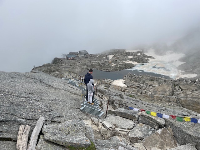Noha zlobí hlavně při sestupu, tak snad zvládnu ještě dojít až do bivaku o 850 m výš, kde chci přespat. Takže pokračuju dál. Jenže hned kousek od centra je u odbočky cedule, že stezka u jezera, kam jdu, je zavřená a mám jít nějakou oklikou. Moc mi tl není jasné. Skoro už si říkám, že teda možná raději zůstanu v místním kempu a do zítřka zjistím, jak to je. No ale nakonec jdu kousek zpět do centra do info centra a tam mi paní vysvětlí, že akorát voda odnesla jeden most a musím jít o kousek výš přes jiný most – zacházka tak 5-10 minut. Ok, tak to teda zkusím. Zároveň se ptám na bivak. Paní říká, že kvůli covidu se nemá používat, jen v nouzi. Ale hned dodá, že to lidi porušují. Takže mi vlastně nepřímo řekla, že je to Ok.