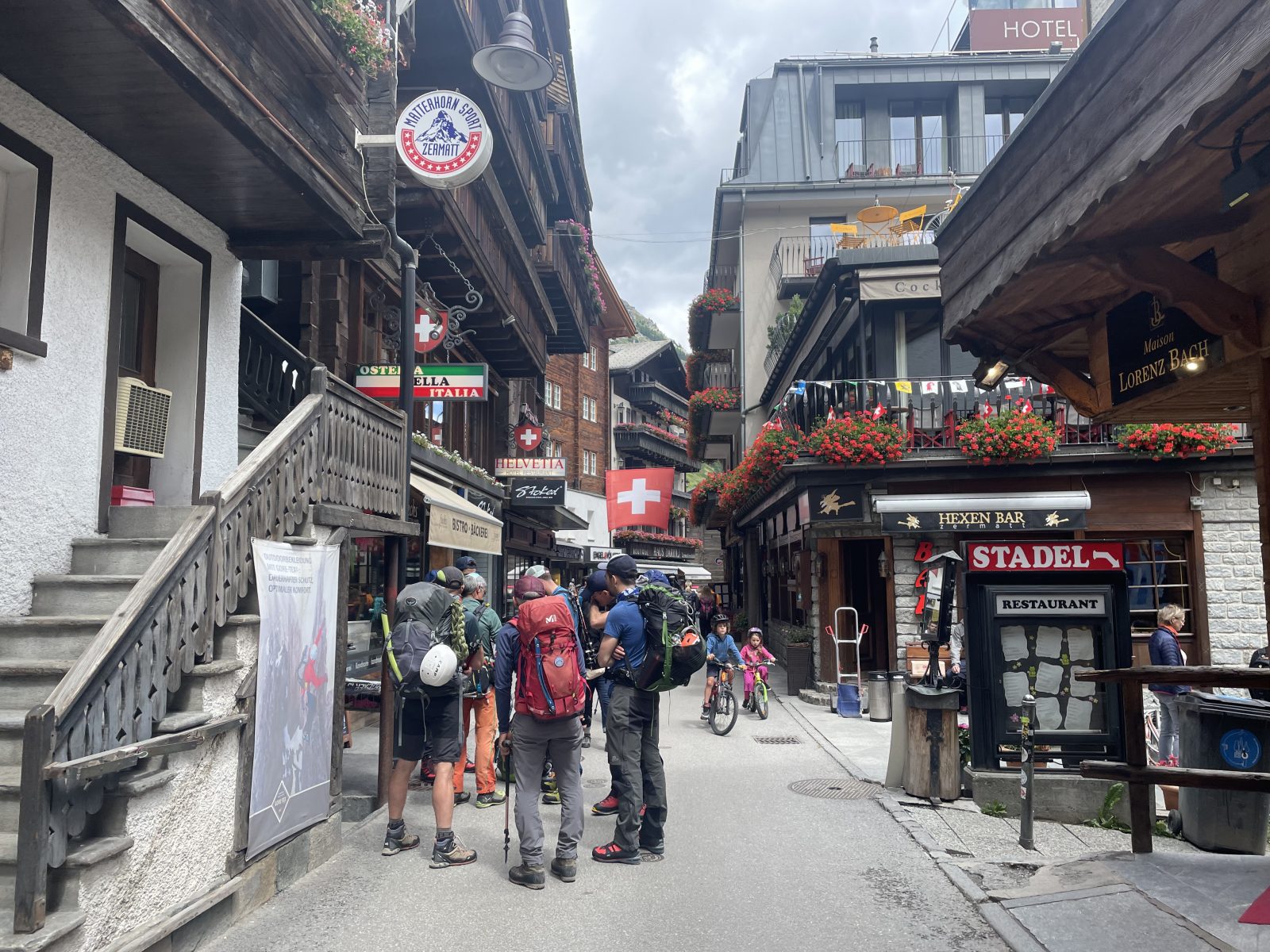 Lanovka vede od jezera Schwarzsee. Tady odtud se líhnou ti lidi. U jezera jsem v 10:38 a u lanovky o pár minut později. Je dost oblačno, ale celkem i svítí slunko, tak je teplo. Sednu si na lavičku a relaxuju. A taky trochu vymýšlím, kde budu spát v Zermattu a co dál.
