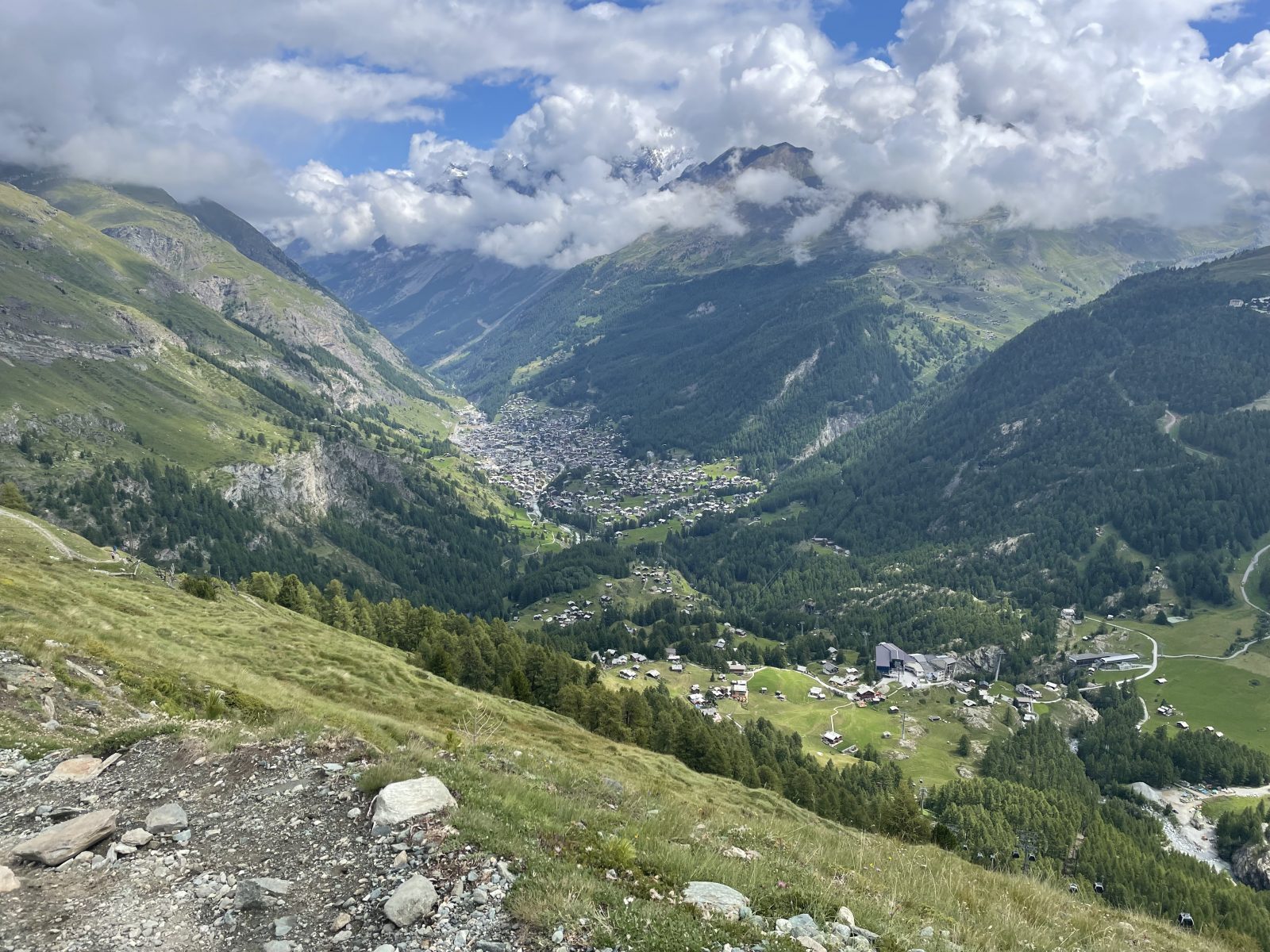 Vyrážím v 7:33. Dnes mě čeká sestup do Zermattu. Nejkratší cestou je to 12 km a 1700 m klesání. Noha se nelepší, asi je to zánět okostice. Čím dýl to budu přemáhat, tím dýl se to bude léčit (určitě to bude několik týdnů). Takže v Zermattu skončím.