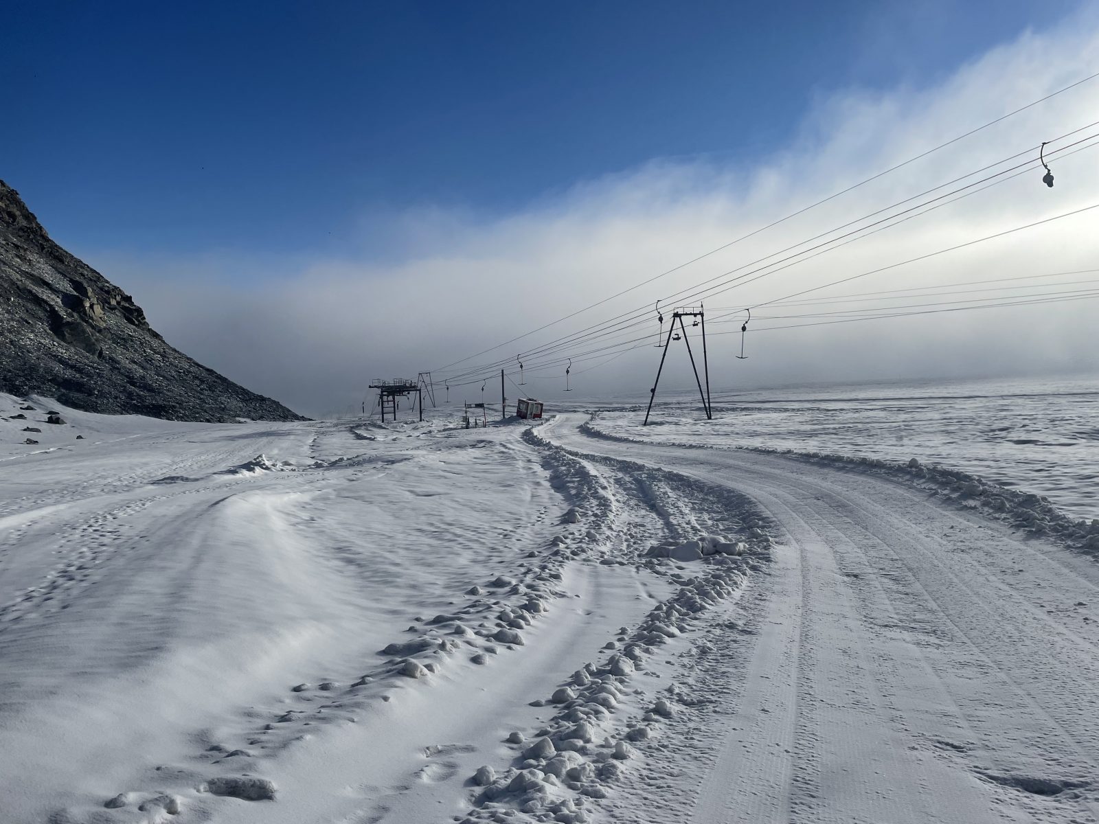 Pak scházím po sjezdovce. Je to místy ledovka, ale celkově je to pohodlný sestup.