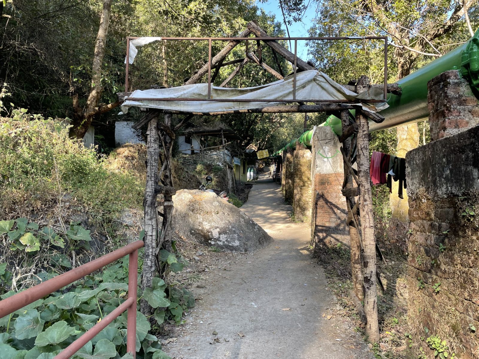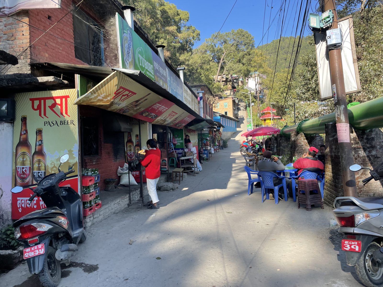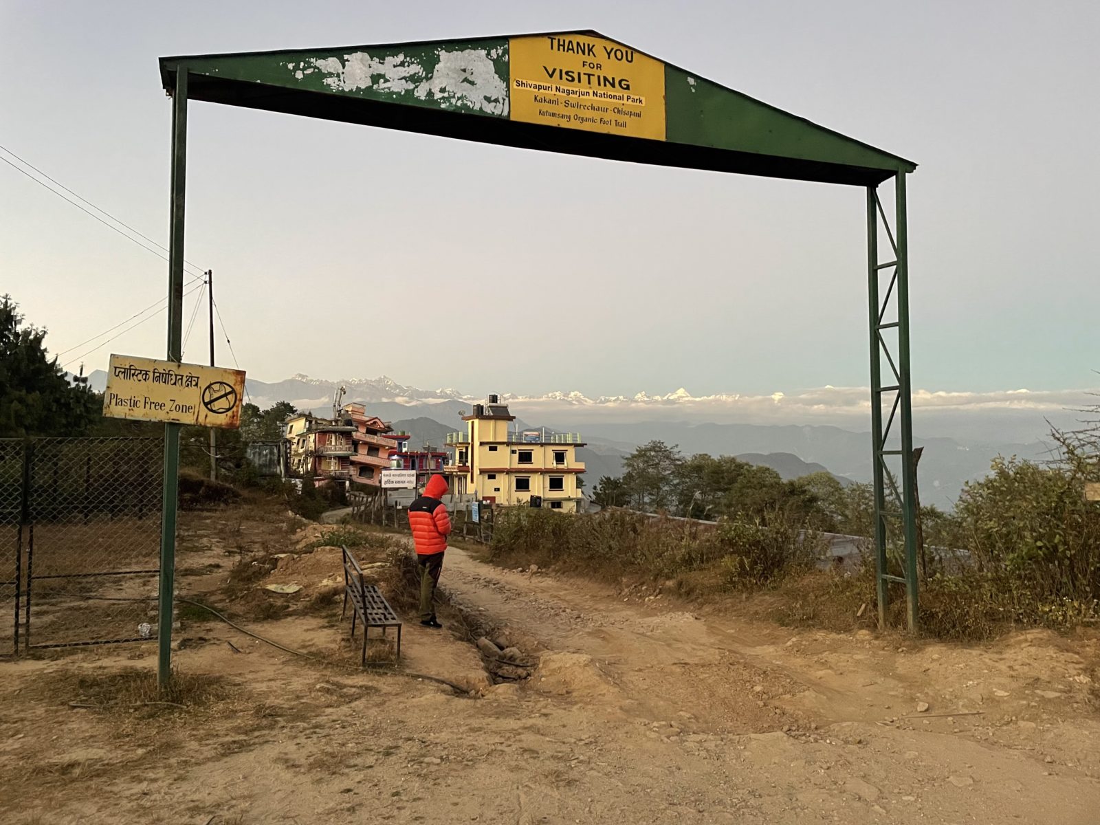Procházím vesnicí kolem obchůdků a restaurací strmě vzhůru. Vesnice končí a začíná les. Je tu vybetonovaný chodník, místy schody. Po chvíli se objeví vojenské kontrolní stanoviště. Musím zaplatit za vstup do parku – 1500 rupií (300 Kč). Pokračuju dál a přidávají se ke mně dva mladí borci. Jsou to vojáci z místní základny, která má na starosti kasírování turistů. Mají zrovna volno a jdou si dát chang (místní alkohol) do vesnice o kus dál. Anglicky moc neumí, ale s jedním z nich si trochu pokecám. Ptám se ho, odkud je. On prý že asi den cesty odsud. Takto se tady měří vzdálenosti. Lidem z odlehlých oblastí to do Kátmandú může trvat i týden.