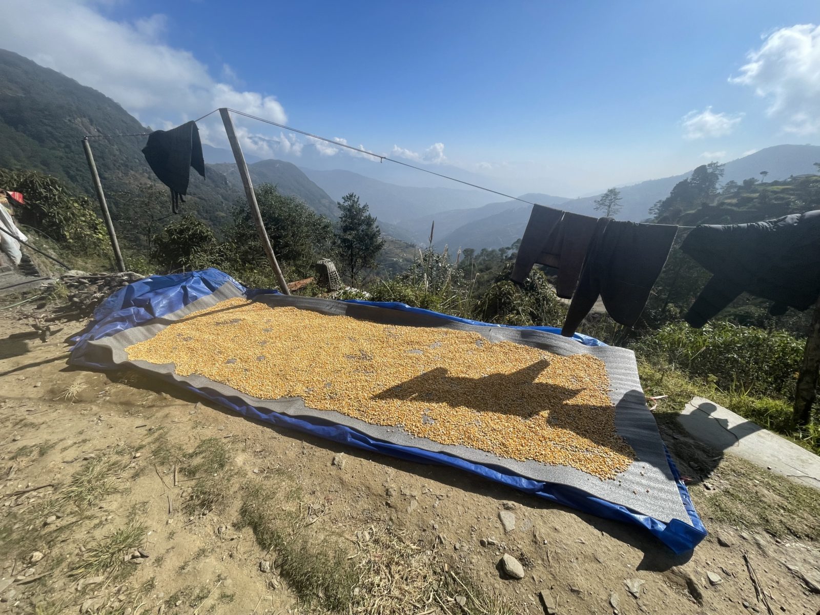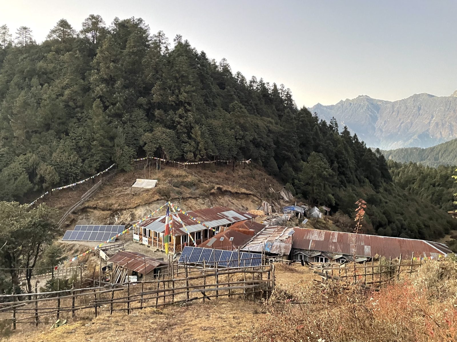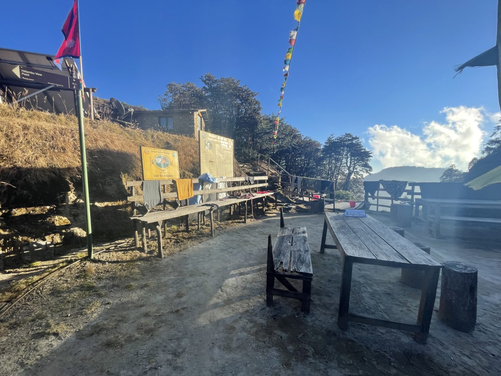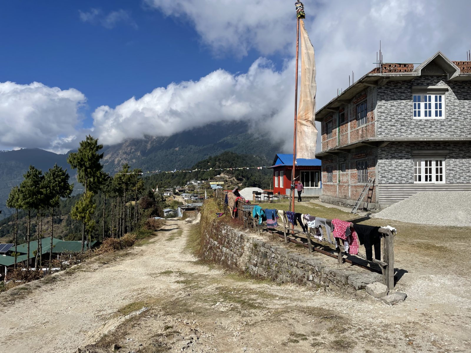 Je 15:30 a já jsem konečně nahoře – v takovém sedýlku ve výšce 3330 m. Je tu guest house. Přemýšlím, jestli jít do dalšího guest housu o 20 minut dál. Paní domácí říká, že ten další nemá takový hezký výhled, že bude lepší, když zůstanu tu. Mohl bych sice jít ještě dál do další vesnice, jenže ta už je ve výšce 3700 m a to mi přijde příliš vysoko – bojím se, že by mi ta výška neudělala dobře. Takže se rozhoduju zůstat. Kromě mě je tu ještě jeden Belgičan okolo padesátky.