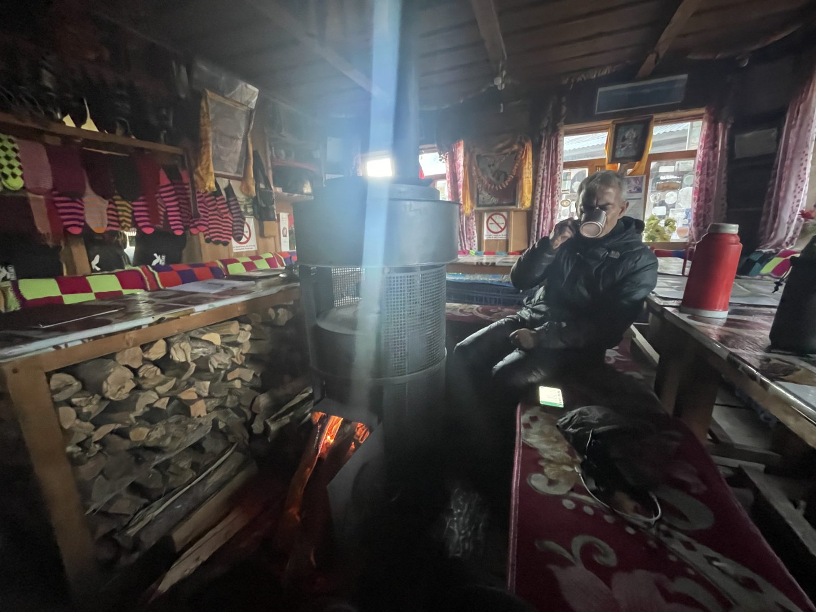 Pak už se stmívá a my trávíme večer v jídelně u kamen. Večeříme, pak se bavíme a čteme si. Na pokoj a spát jdu někdy kolem deváté. Jsem rád, že jsem se dnes dostal nad 3000 m, aklimatizace jede na plné obrátky!