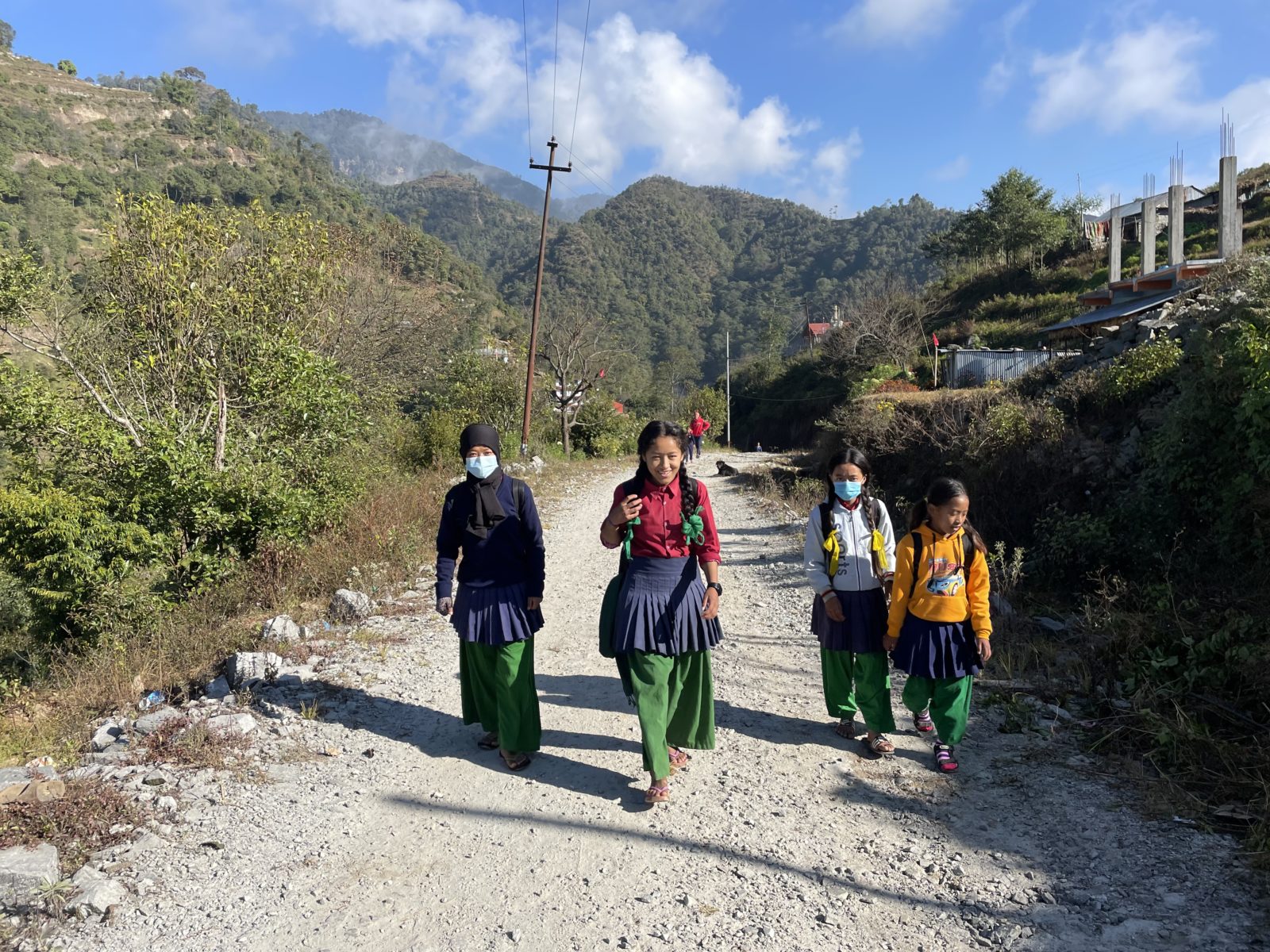 Pokračuju po cestě dál mírně do kopce kolem domů. Potkávám místní, hlavně děti, co jdou zrovna do školy.