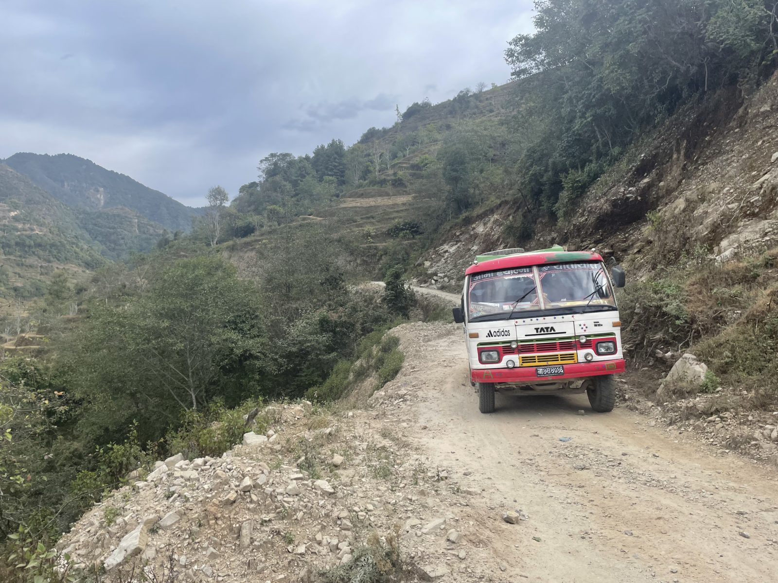 Potřebuju se dostat do hotelu, kde má Michael (německý kolega turista) věci, potřebuju mu tam nechat nesmeky. Je to asi 3-4 km na sever z centra v takové lepší čtvrti, kde jsou různé ambasády. Najít správný bus bude výzva. Naštěstí v prvním busu ze Sundarijalu se mě ujímá pán a že mě zavede v Kátmandú k tomu správnému busu, super! Jdeme kousek po ulici, pak dojdem na to správné místo, zrovna přijíždí mikrobus. Nastupuju. Je plno.