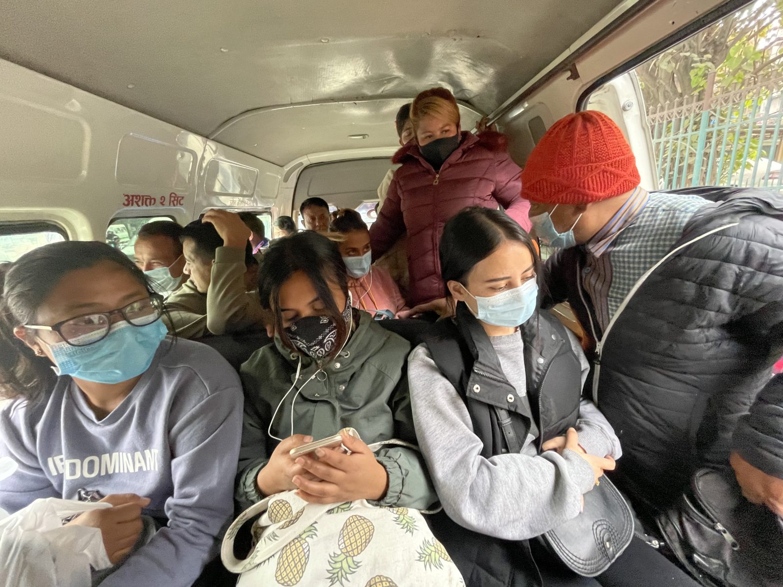 Na další zastávce chtějí dva borci přistoupit a když vidí, jak jsme plní, tak to chtějí vzdát, ale naháněč našeho mikrobusu je přesvědčí, že místo je. Skutečně se to podaří. Ale pak už jsme fakt plní.