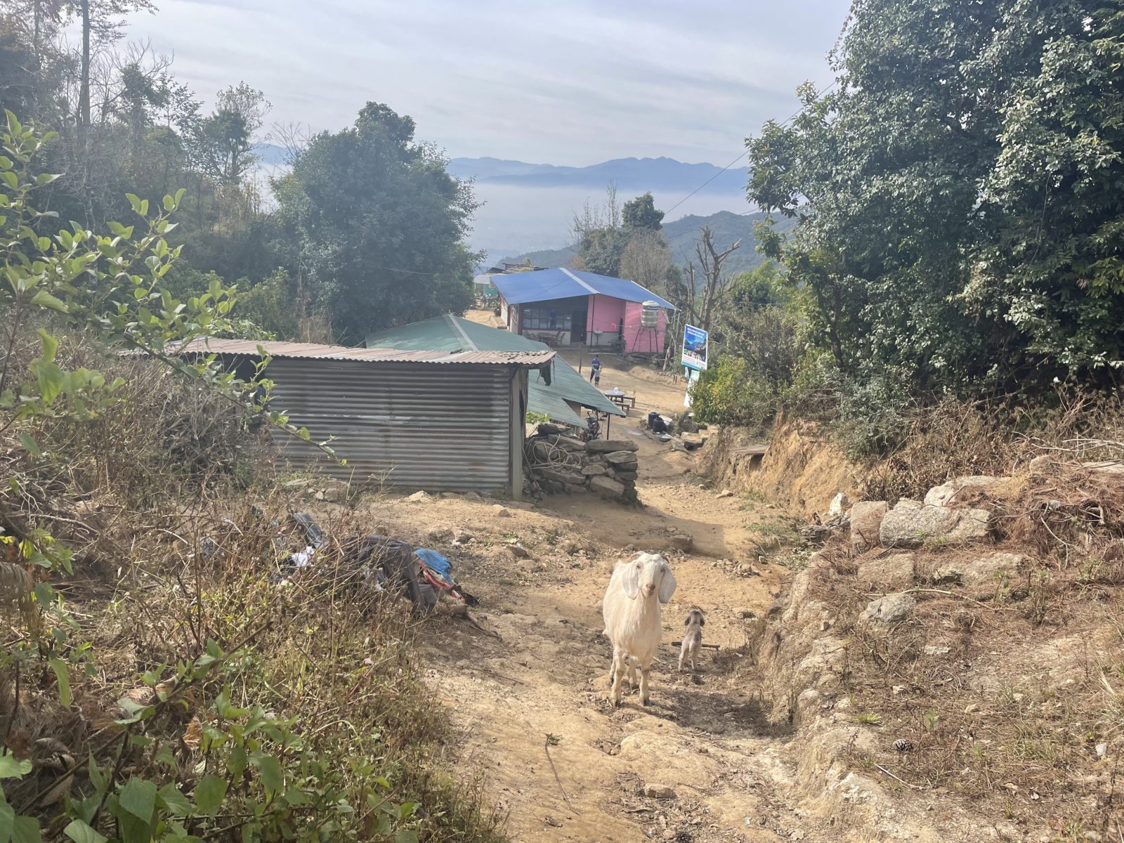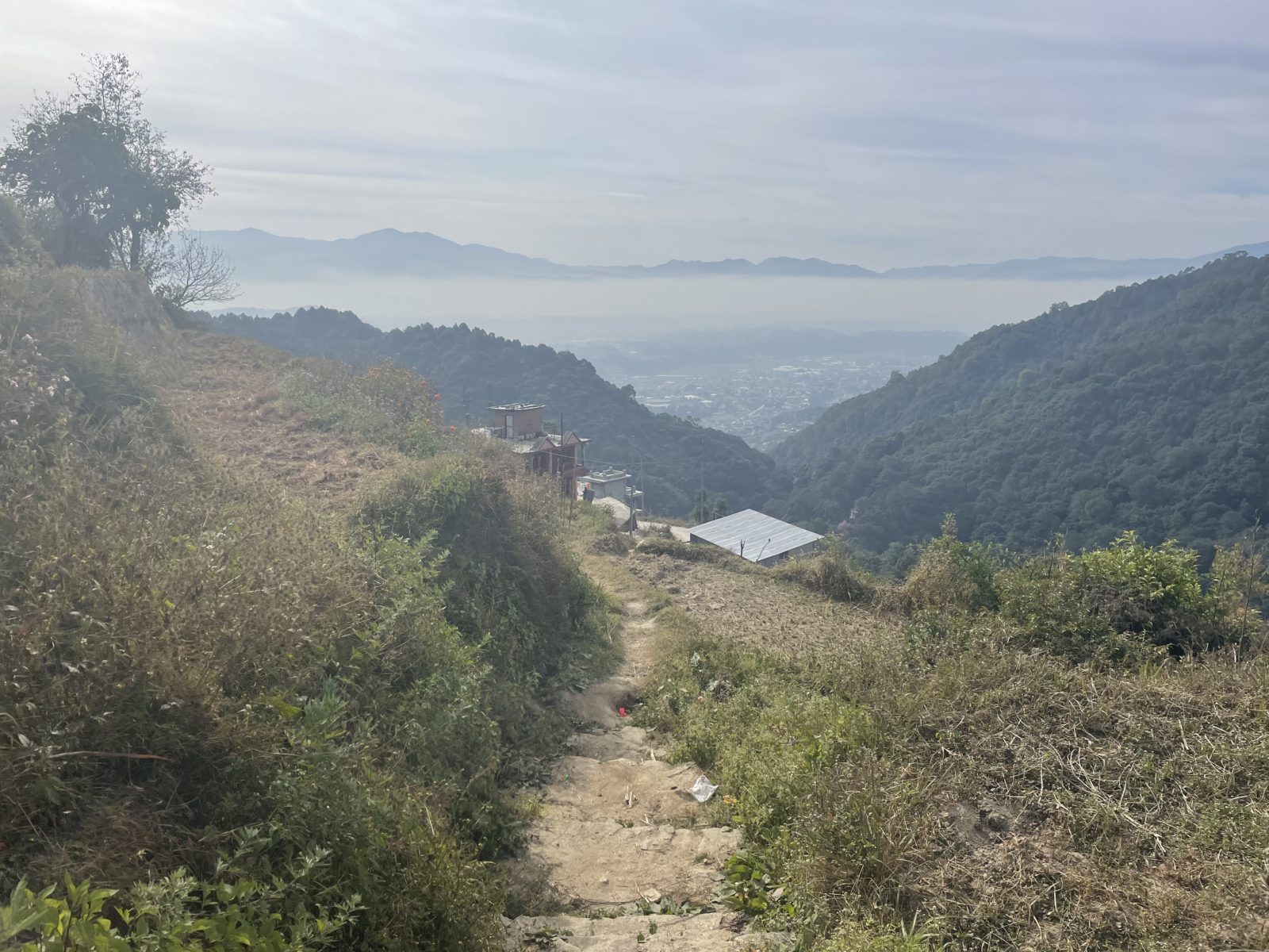 Pak to začne stoupat – z nějakých 1750 m do 2150 m do Chisapani, kde jsem spal první noc. Za vesnicí prve jdu kousek špatným směrem, ale naštěstí to skoro hned zjistím a vrátím se zpět na rozcestí. Tady scházím z hlavní cesty a pokračuje menší cestička. Dál stoupám až do 2350 m. Pak konečně začíná klesání.