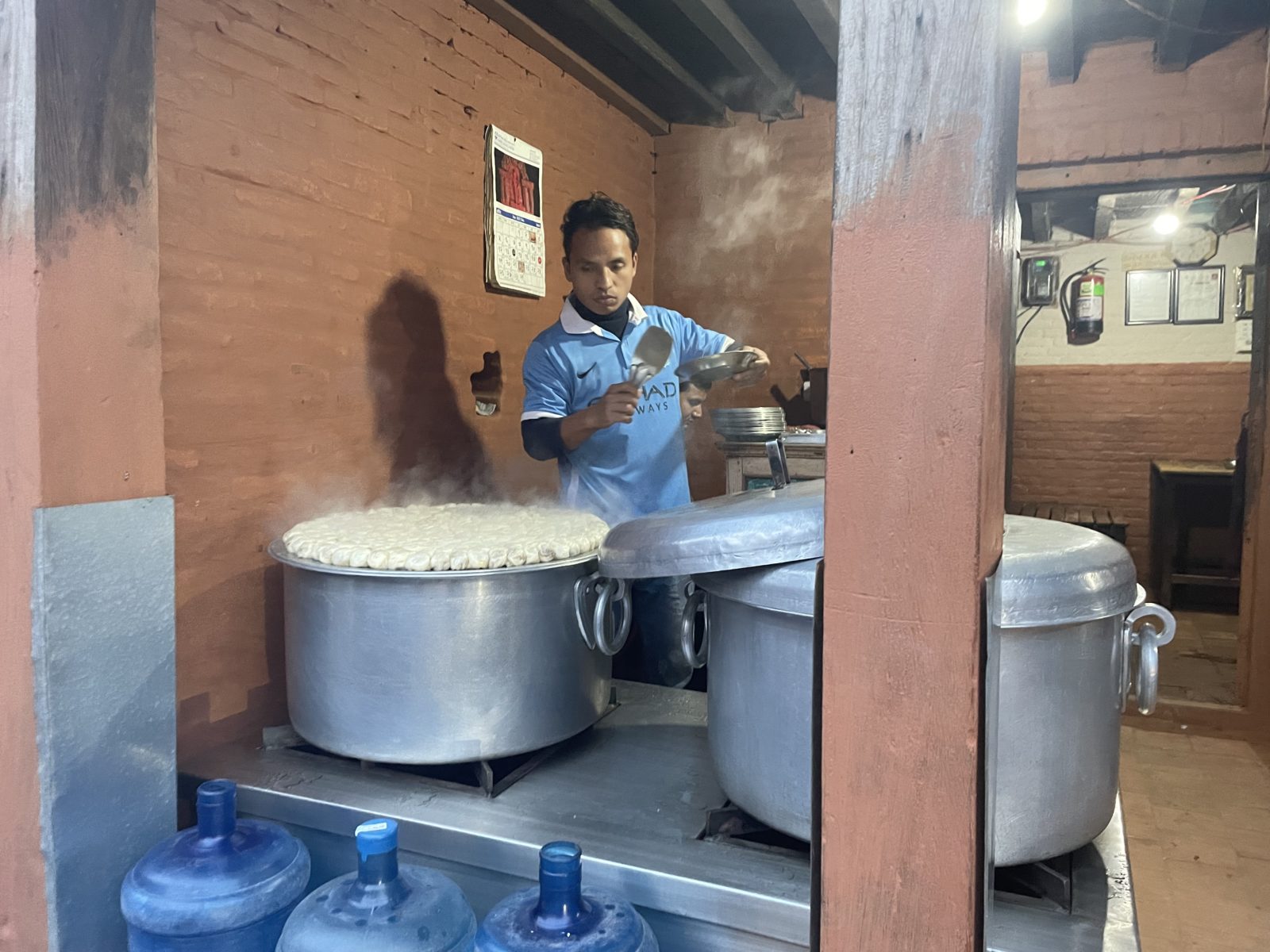Někdy po půl 12. jsem v Sundarijalu. Šlo to hladce. Tady si dám jídlo a pak nasedám na autobus a jedu do Kátmandú. Za mnou sedí borec, co docela dost kašle, je to nepříjemný. Jak je příležitost, tak si přesednu jinam.