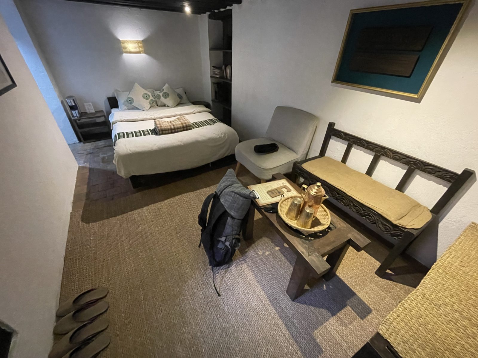 Někdy po druhé odpoledne jedem. O půl 4. jsem konečně ubytovaný v Bhaktapuru. Jsem v takovém hezkém hotýlku, kde jsem byl i minule. Je na jednom z náměstí v historickém centru, je to tu krásný. Akorát teda jsem nějak od minula zapomněl, že je uvnitř dost chladno. V létě by byl chládek super, ale teď to není nic moc. Venku je přes den tak 18, možná i ke 20, ale uvnitř je spíš tak 13 nebo 14. Možná kvůli tomuhle příště zvolím spíš nějaký normální guest house, který má hodně oken a přes den se prohřeje. Ale není to žádná tragédie, dá se to.