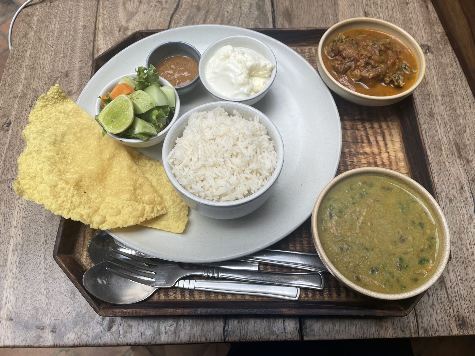 Jdu zpět do hotýlku. Na oběd si tentokrát dávám místní variantu dal bhatu (i s masem).