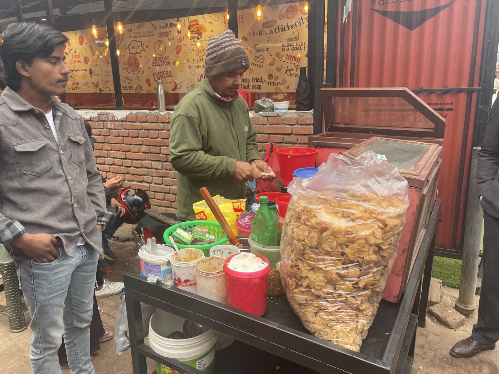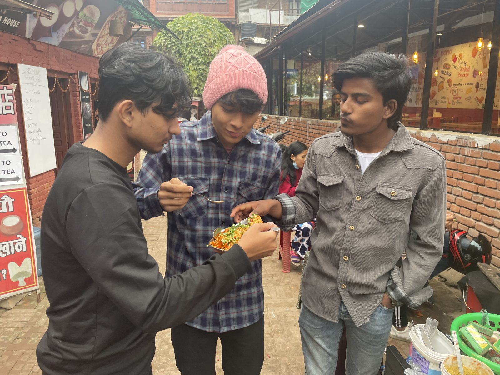 Mám chuť na nějaké jídlo. Dojdu k takovému pouličnímu stánku. Borci z Kátmandú mě přesvědčí, že to musím vyzkoušet.