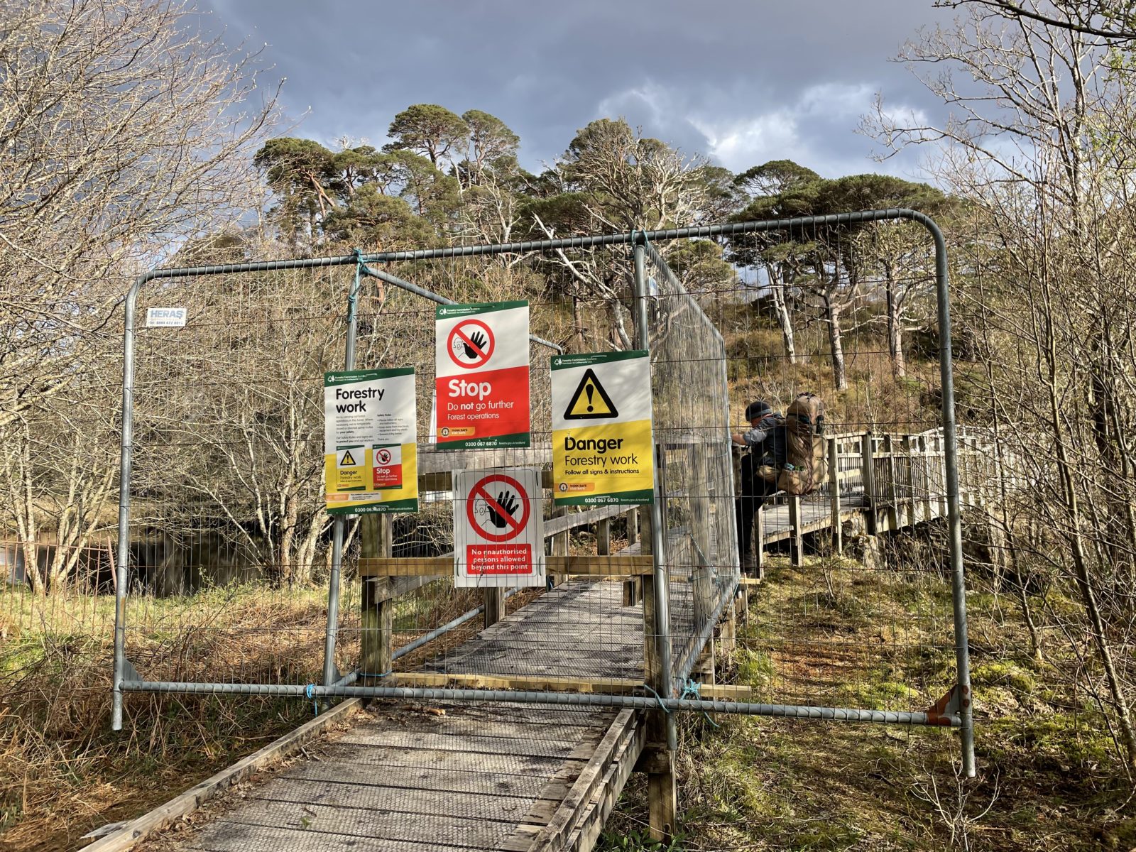 Chvíli před silnicí musíme překonat zavřený most, nemáme moc jinou možnost, museli bychom si hodně zajít, kdybychom to chtěli obejít.