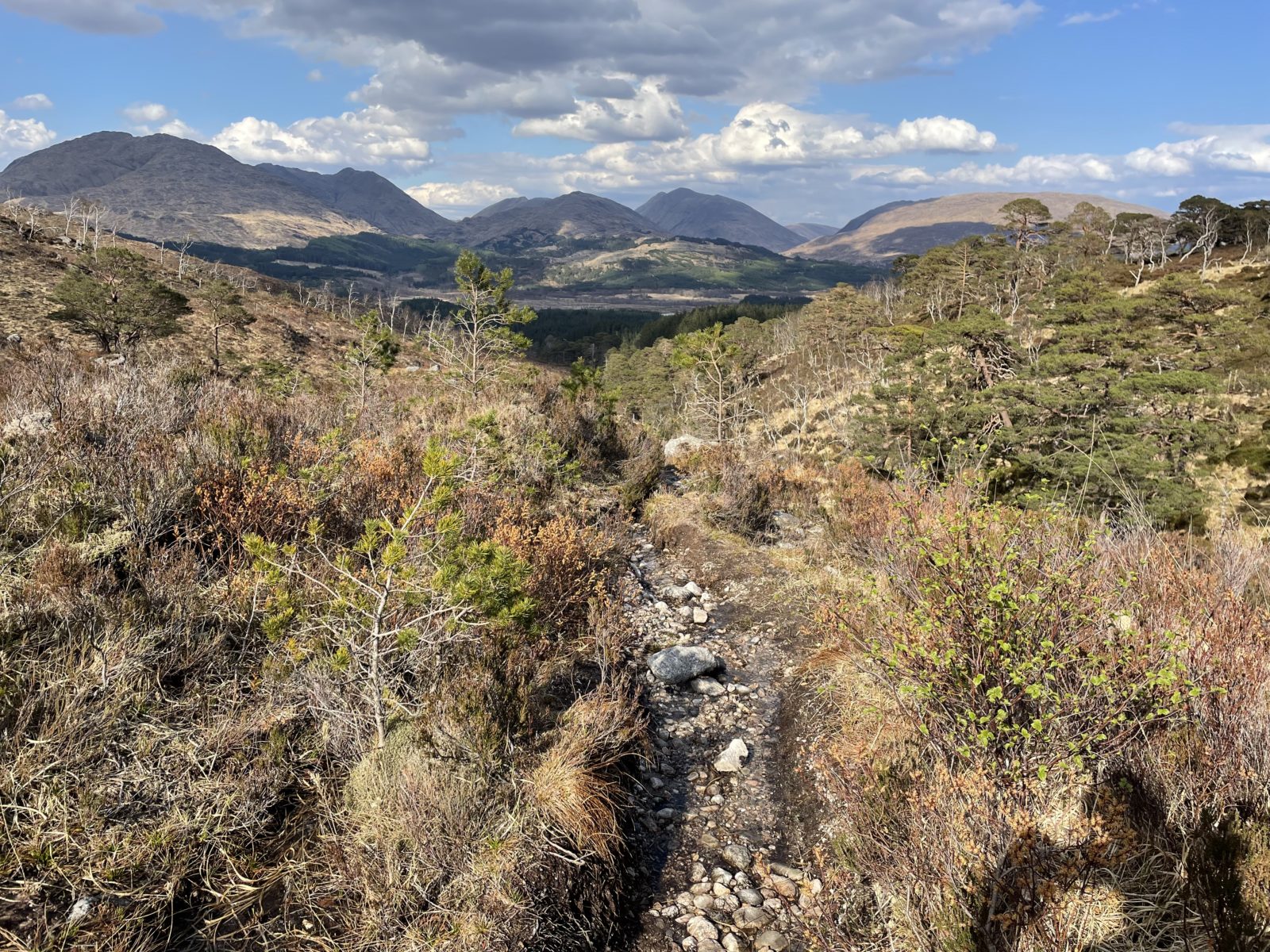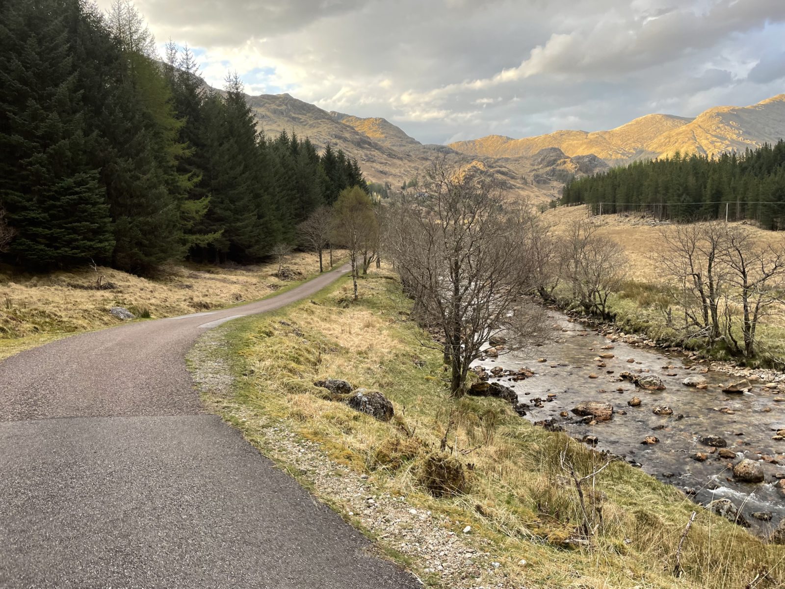Stezka teď vede dolů až asi do 30 m. Když jsem skoro dole, potkám zase kolegu chodce. Jdeme spolu a kecáme. Je někde z Anglie a došel až sem z domu po svých. Už je na cestě asi 3 týdny. Prý projít Cape Wrath Trail byl dlouho jeho sen a jelikož je to náročná stezka, tak vyrazil z domu pěšky s tím, že než dojde na start CWT, tak bude dostatečně fit. Je to fajn týpek.