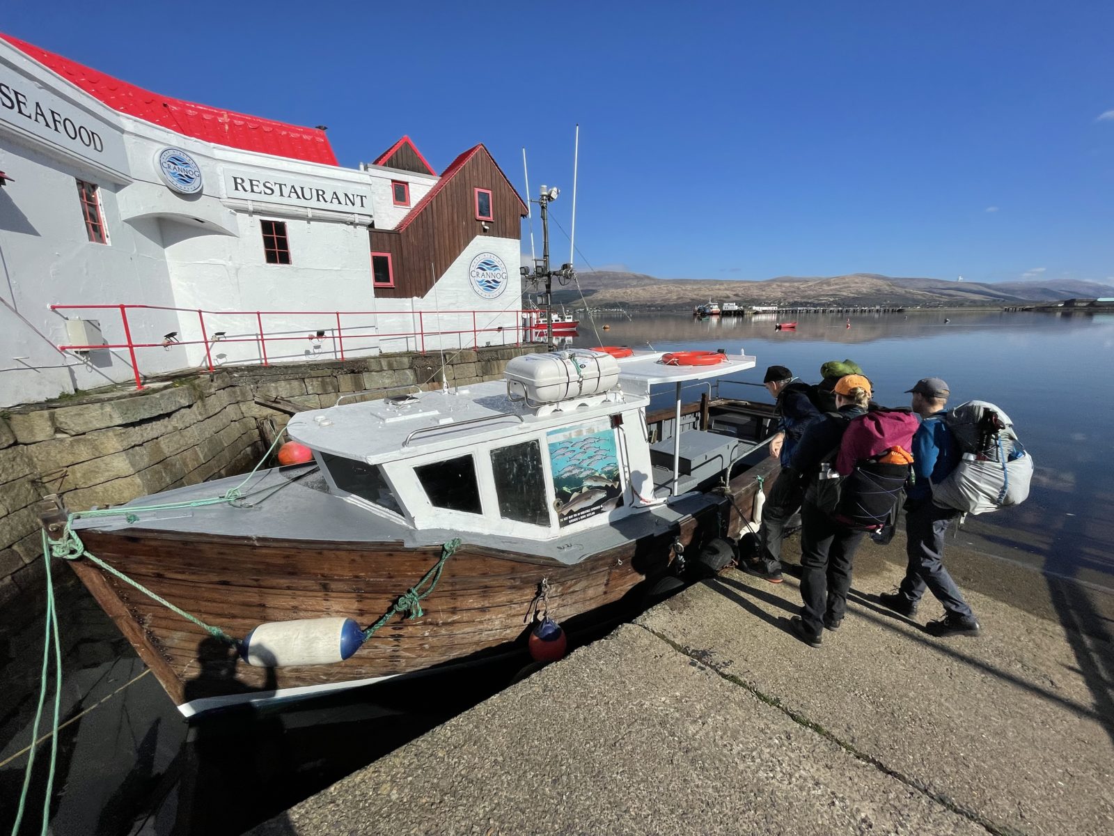 Jdu k přístavu. Jsou tu dvě stanoviště. Jedno pro turistickou vyhlídkovou loď. Na tu už tu čeká hodně lidí. A druhé pro malou loď, která funguje jako přívoz mezi dvěma břehy Loch Linnhe. Už tu na ni čeká několik dalších chodců, co se taky chystají na Cape Wrath Trail. Je tu jeden pár v důchodu, jeden padesátník a jeden starší Američan. Všichni jsou do jisté míry ultralight, nebo aspoň lightweight. Základní váha tak do 10 kg. Hned se bavíme o tom, kdo má jaký batoh a stan atd.