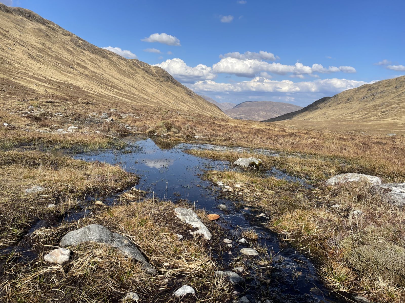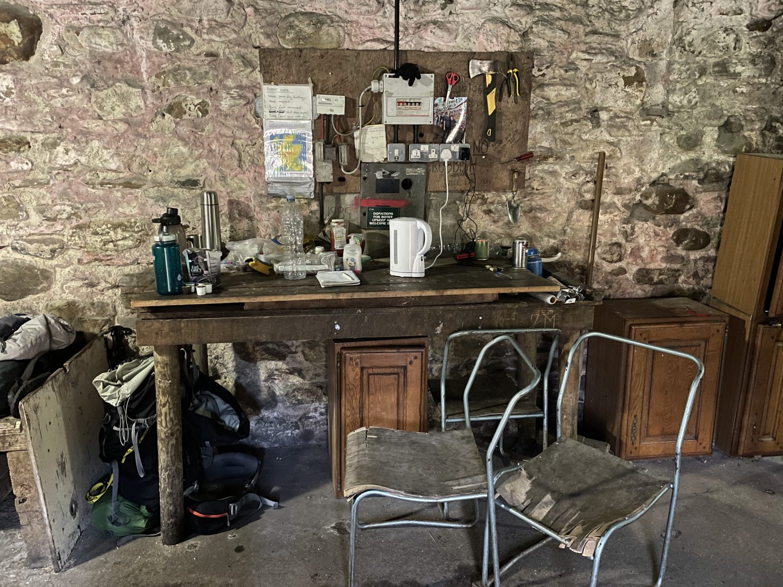 Konečně dojdu k Corryhully Bothy. Je 19:35. Je tu celkem dost lidí, tak si postavím stan na krásném plácku vedle u řeky. Hned za mnou jde jedna holka na kus řeči. Zajímá ji, co mám za stan. Vyklube se z ní bývalá triatletka. Absolvovala 18 Ironmanů, z toho 3 na Havaji. Ale pak měla únavový syndrom a musela přestat. Pak je tu německá rodinka. Pak ještě pár dalších chodců a jedna holka na kole. V bothy je dokonce elektřina, což je docela vzácnost.