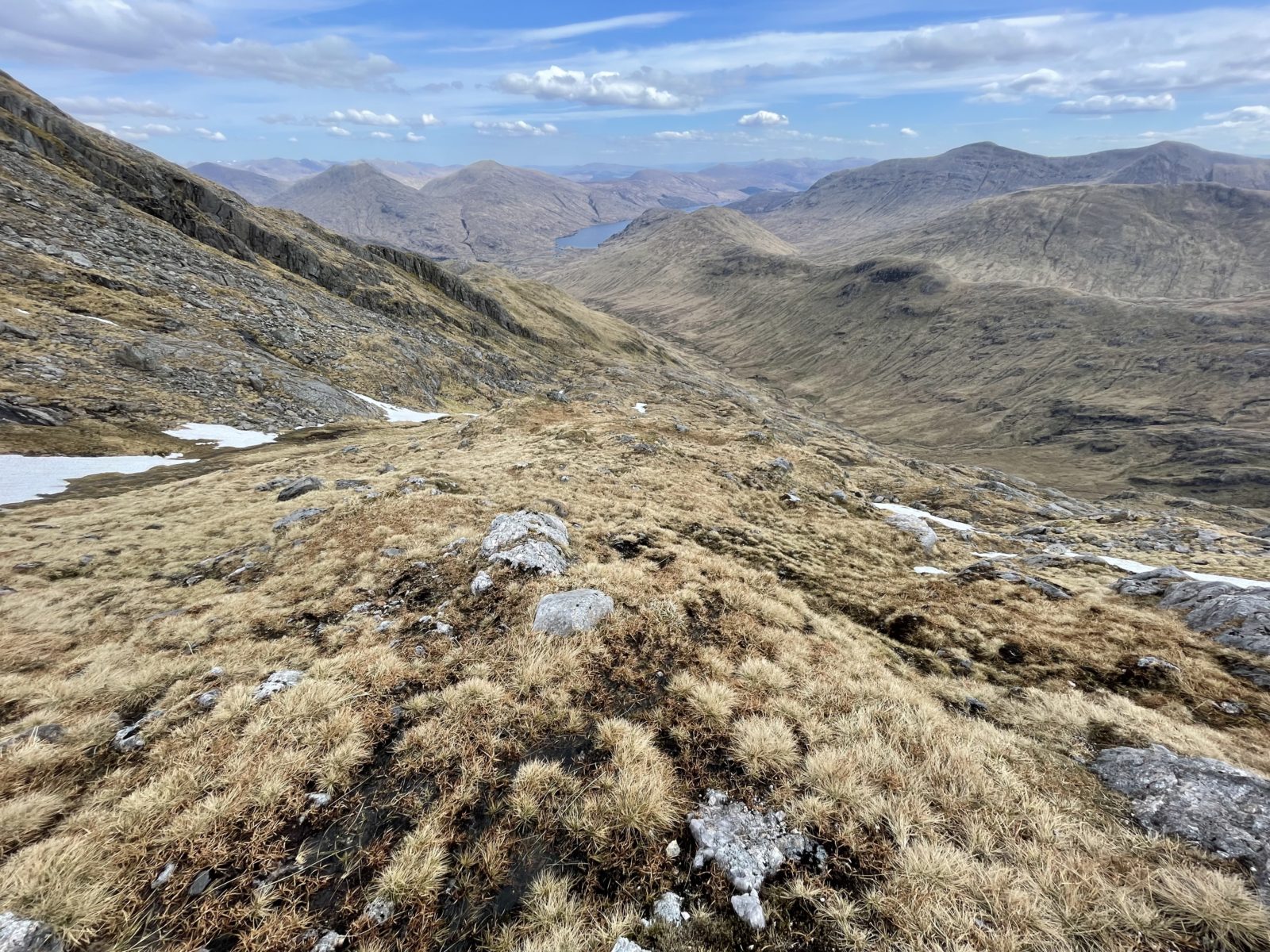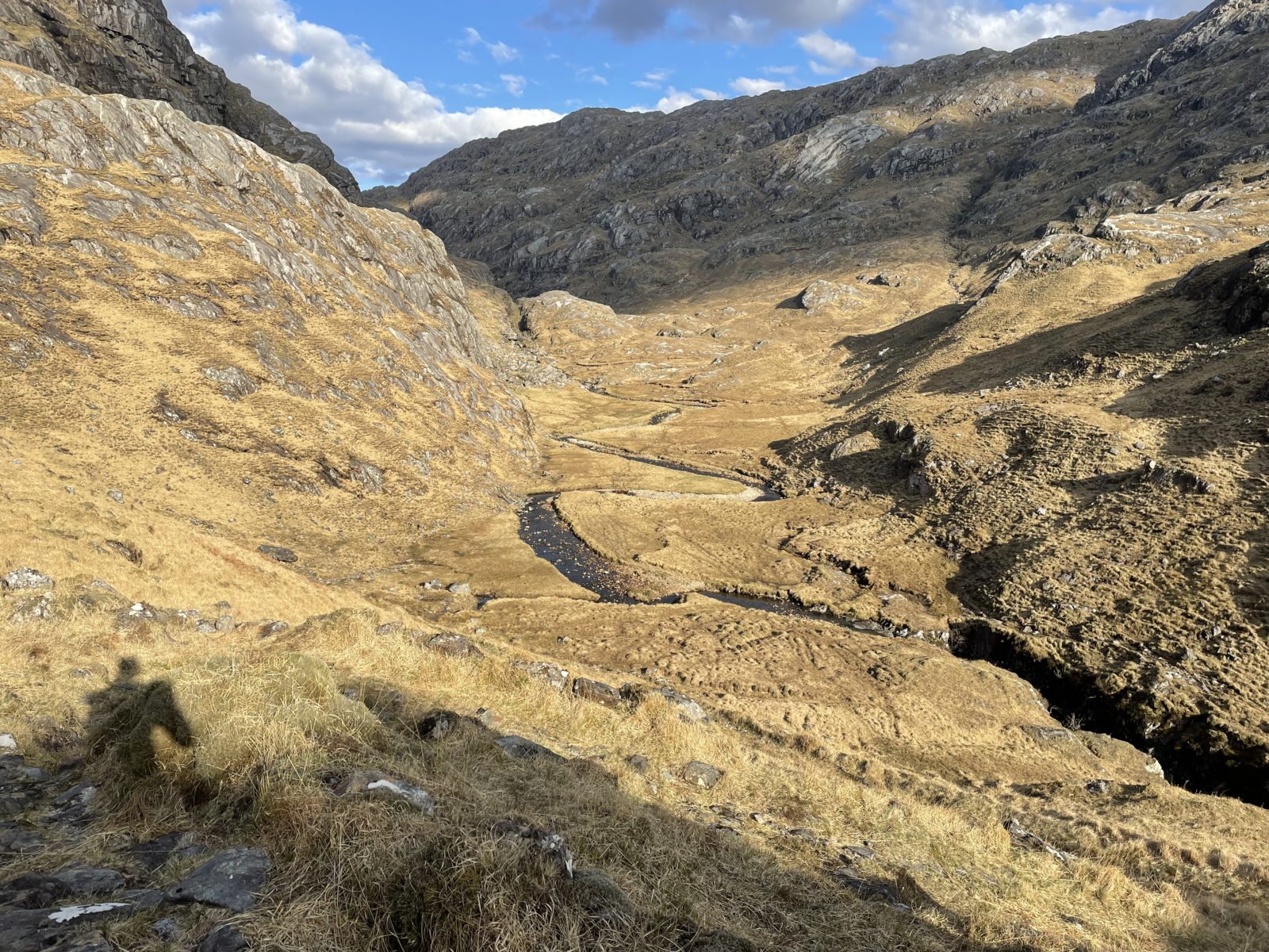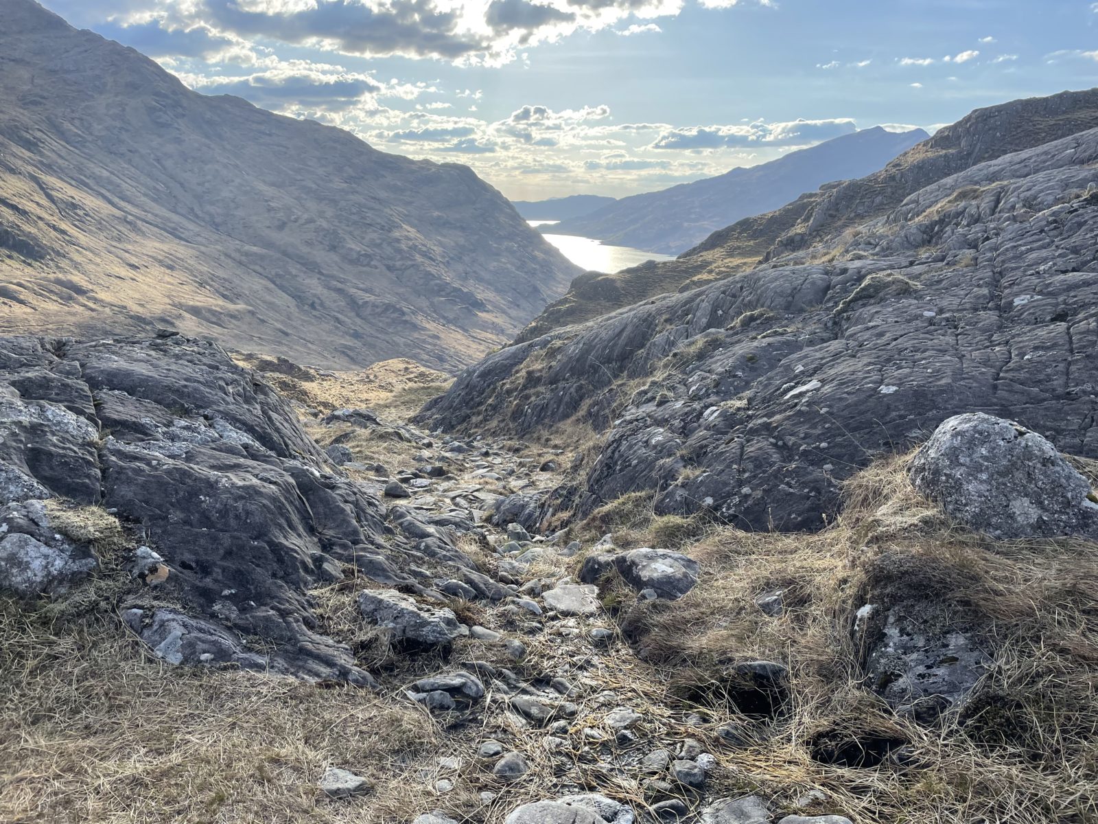 V sedle jsem někdy po páté hodině. Začínám klesat k Loch Nevis, což je vlastně záliv moře. Je to fajn. Jak se mi začne otevírat pohled na loch, tak je to dokonce wow.