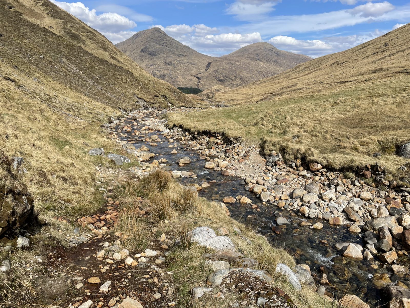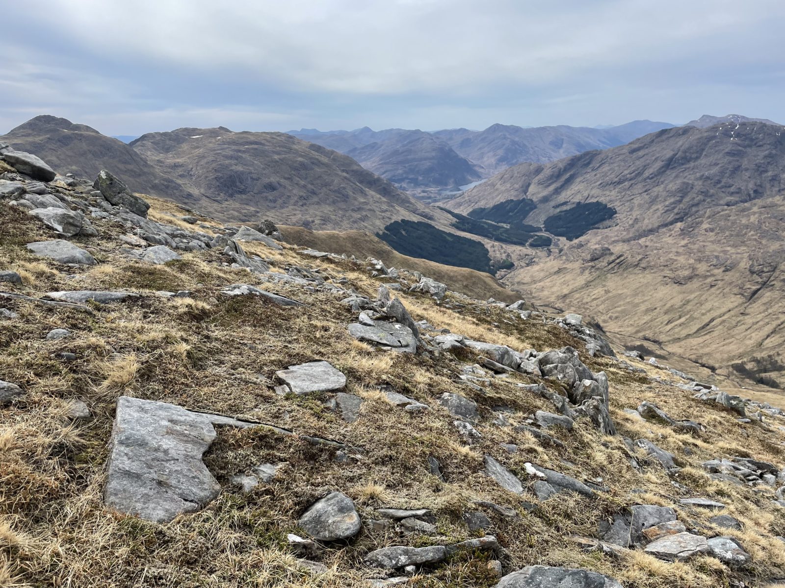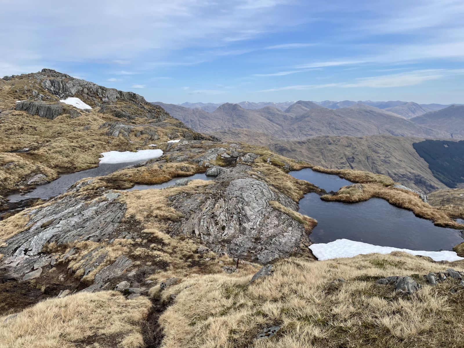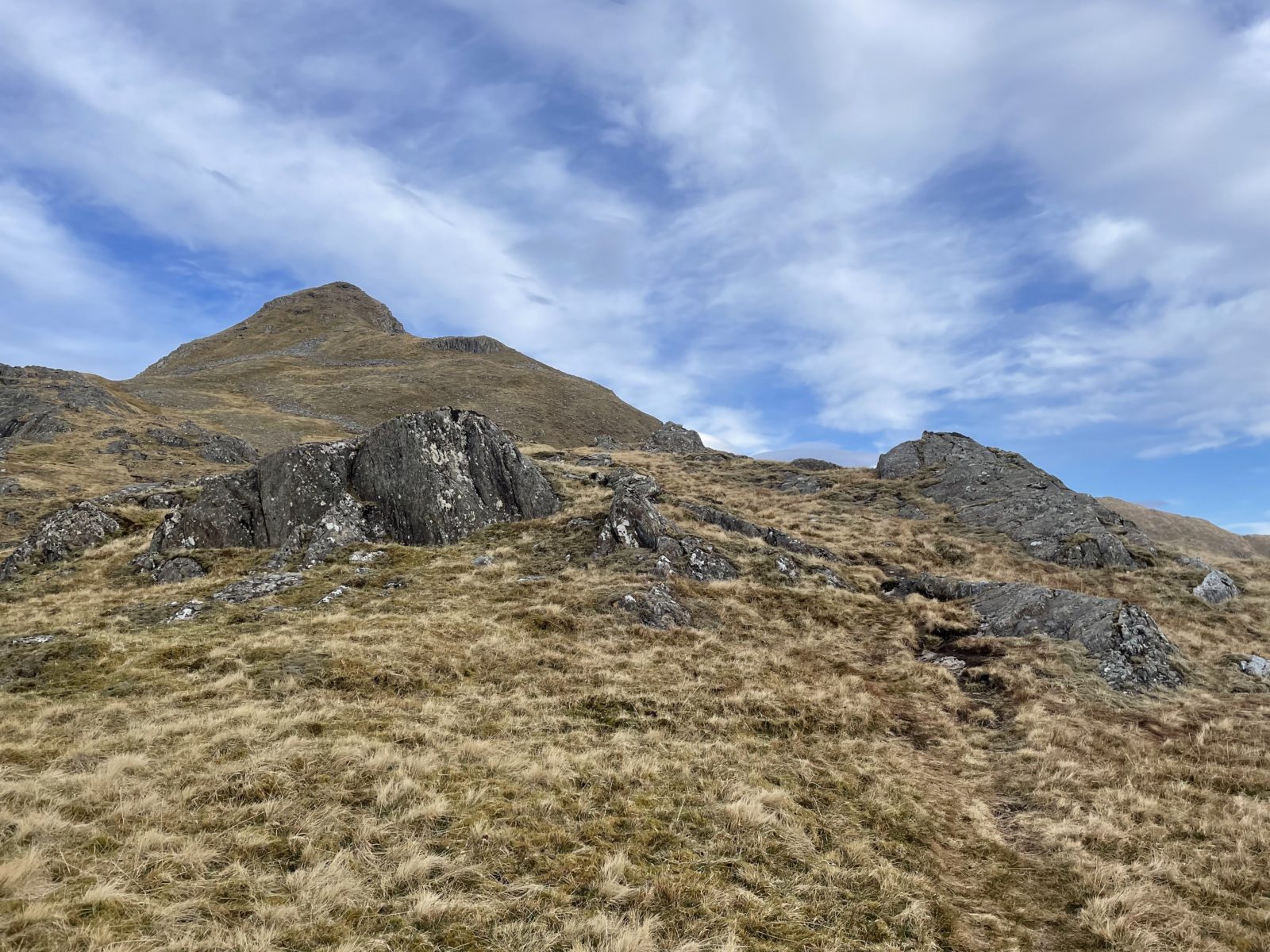 Pokračuju po hřebenu. V dálce vidím dva lidi se psem. Jdou po hřebeni opačným směrem. Za chvíli se potkáváme. Spali včera taky v bothy. Prohodíme pár slov a pokračujem dál.
