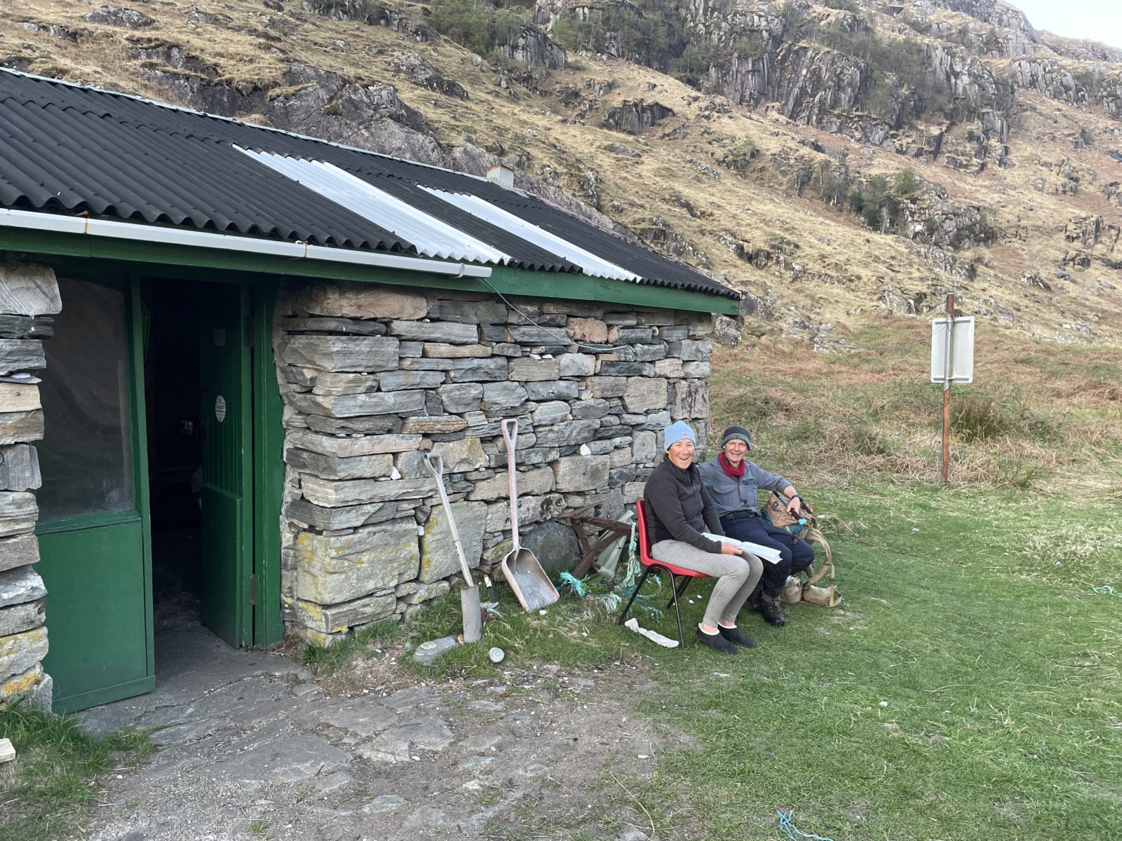 K bothy dojdu okolo sedmé. Už je tu ta triatletka s kamarádkou. Později dojde i kolega, co jsem ho dnes potkal. Postaví si stan před bothy. A pak ještě o kus vedle má stan jeden pár. V bothy budem jen 3.