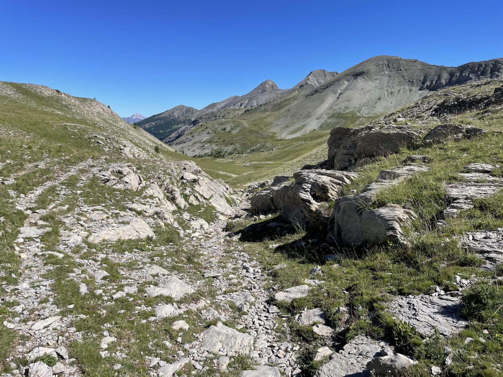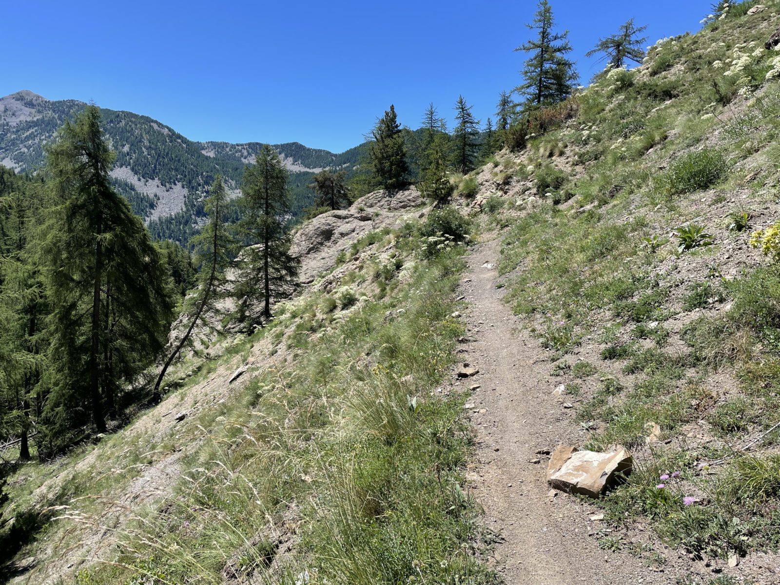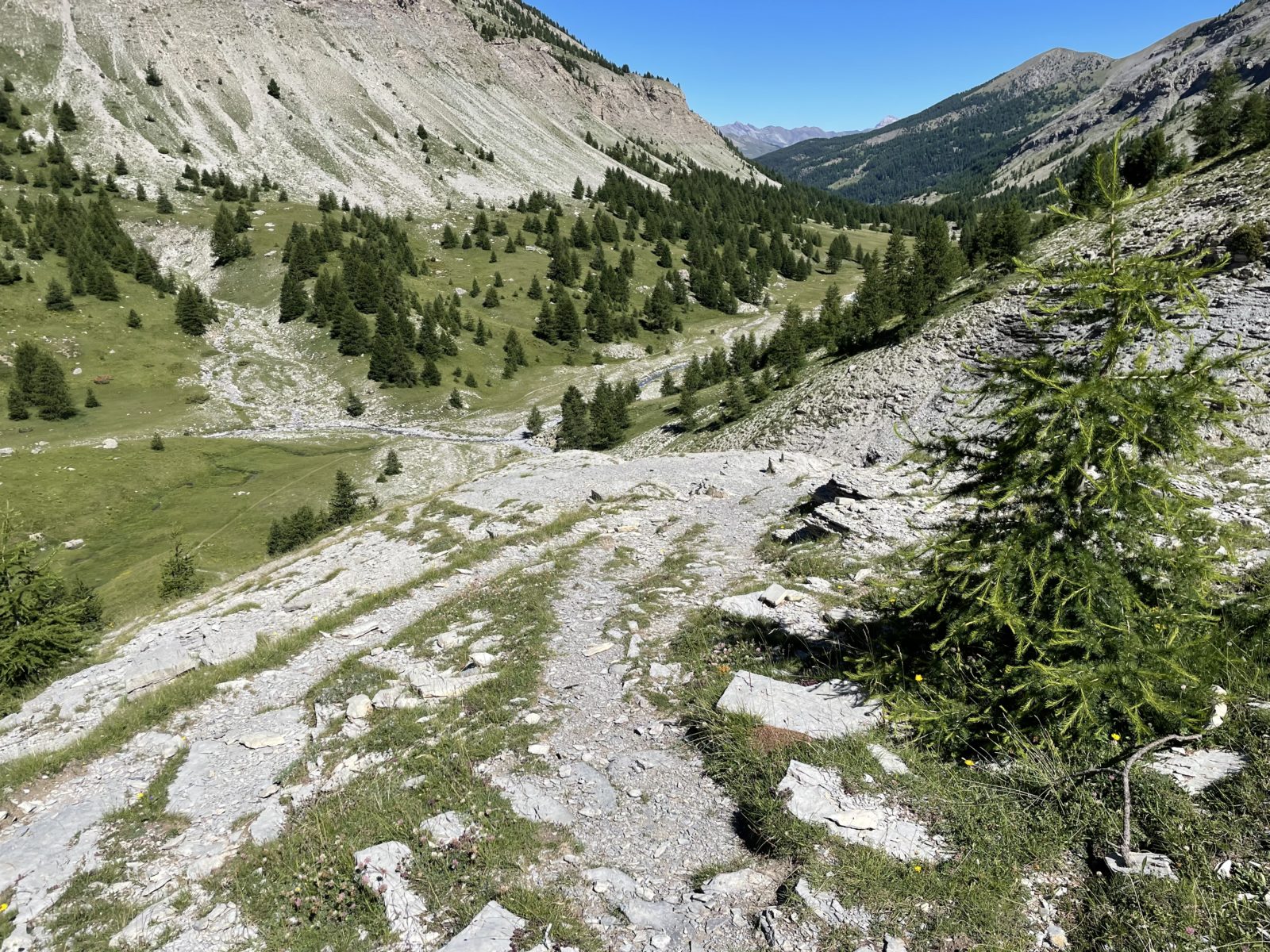 Kdybych pokračoval pořád dál, tak bych došel údolím až dolů do vesnice Colmars. Ale díky Bernadette vím, že potřebuju odbočit doprava a začít stoupat nad údolí. Začíná to někdy po půl 12.